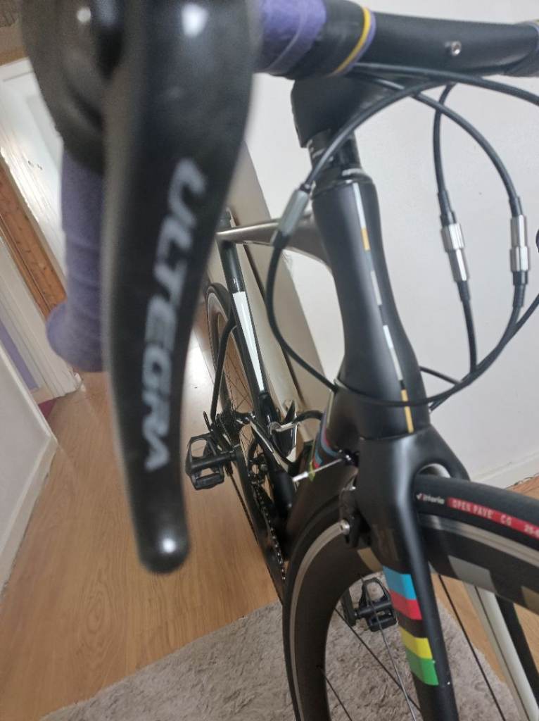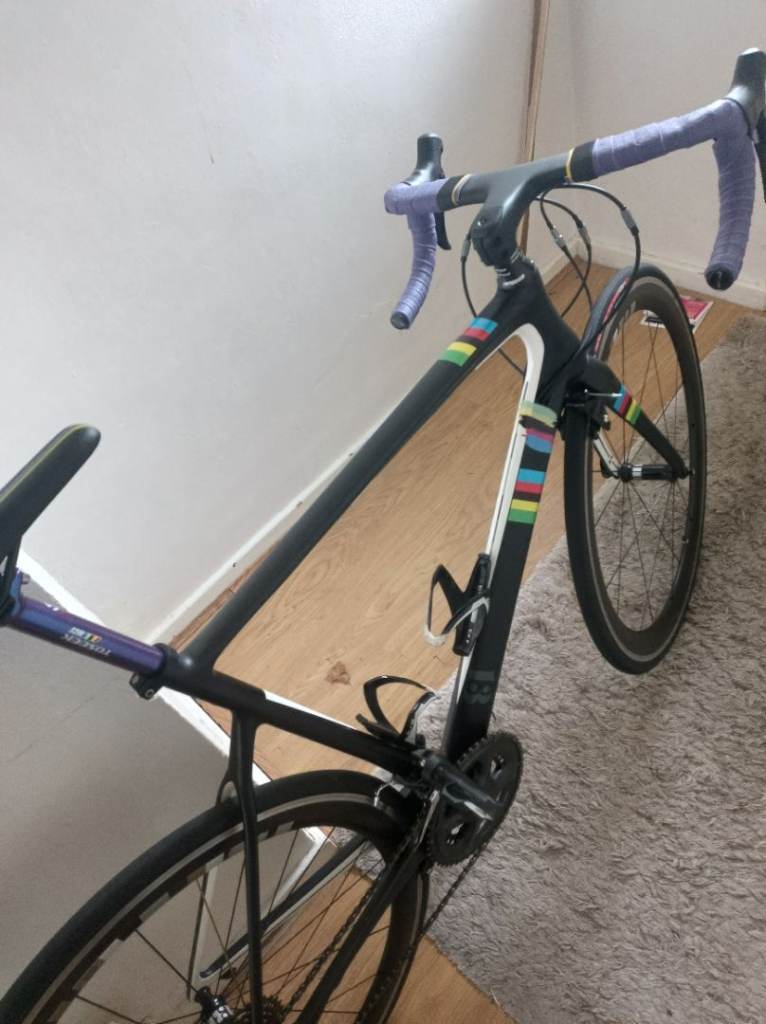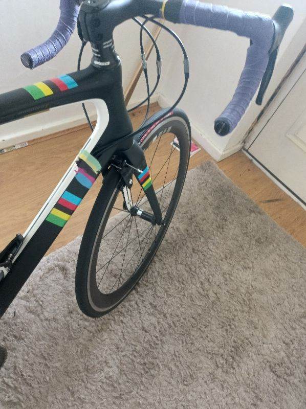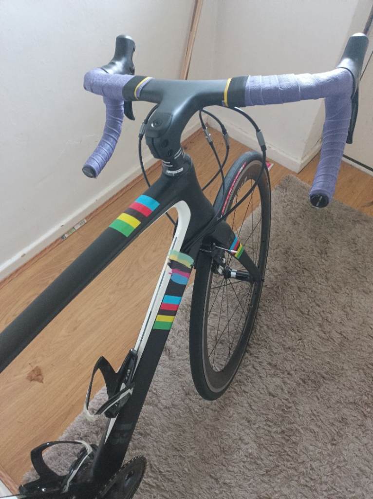 for sale aero carbon road bike with new upgrades over £200 spent on upgrading new addition including brand new carbon integrated cockpit brand new carbon seat post new saddle new look type pedals with new bike tape.the bike works as you'd expect the group set is the trusted Shimano ultegra group set 11 speed cassette 11 34 for ease of Hill climbing bike have original deep section carbon wheels super smooth bearings bike is road ready needs nothing expect a few scratches on a used bike but nothing major any trial inspection very much welcome no dealers or tyre kicker's it's cheap enough size is XL suitable riders 5 9 6 feet plus.