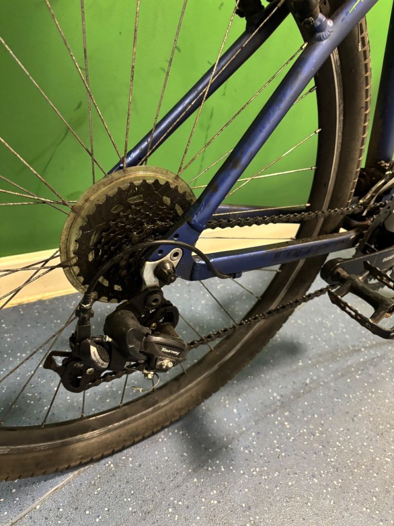 Amazing bike brought to use for a little bit while my main bike was in the shop all the gears are smooth and working very sharp rim brakes bake and front lots of tread left on both the tires new seat which is way more comfortable than the original soft grips overall amazing bike price is moveable open to offers don’t be scared to ask any questions 18 inch bike frame