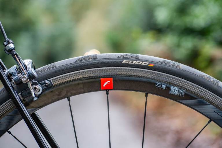 Fulcrum Wind 40 Carbon Wheelset, these are shod with Continental GP5000 tyres and feature the AC3 brake tracks. Fantastic set of hoops which have no wear to the brake tracks and are near new.