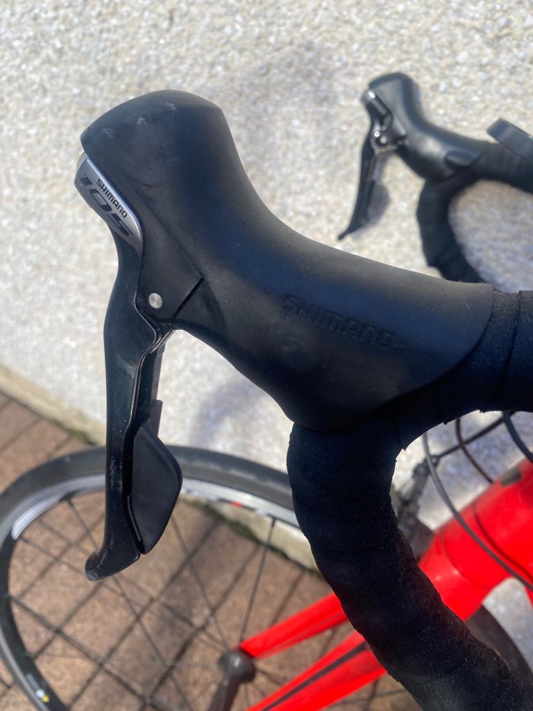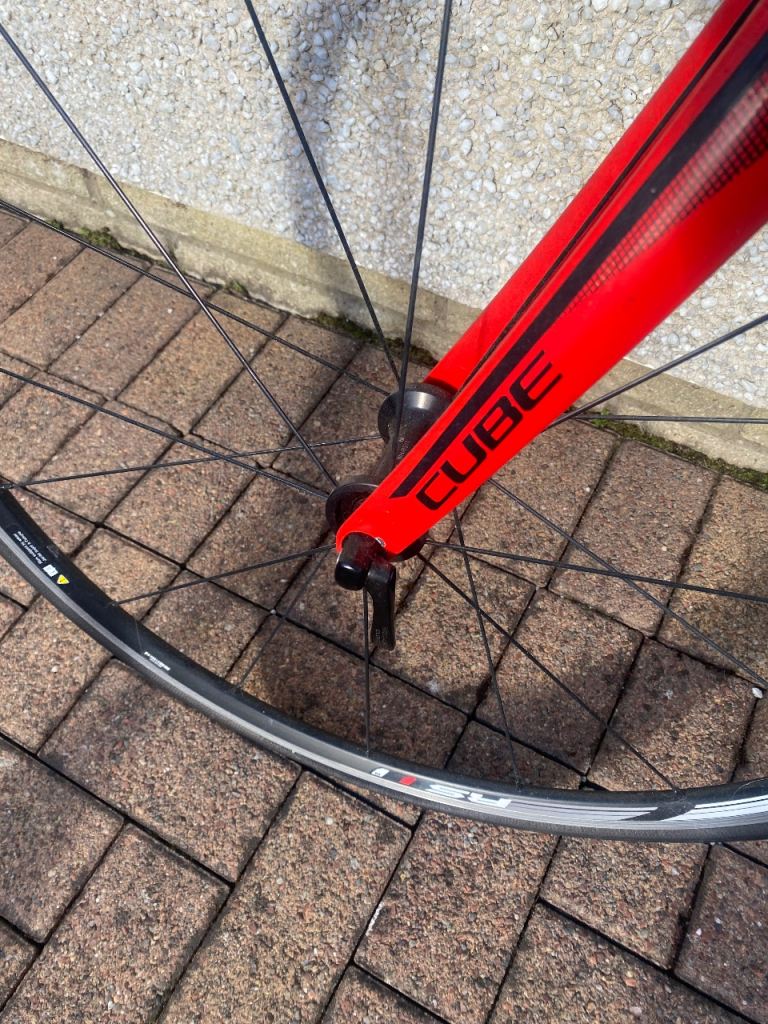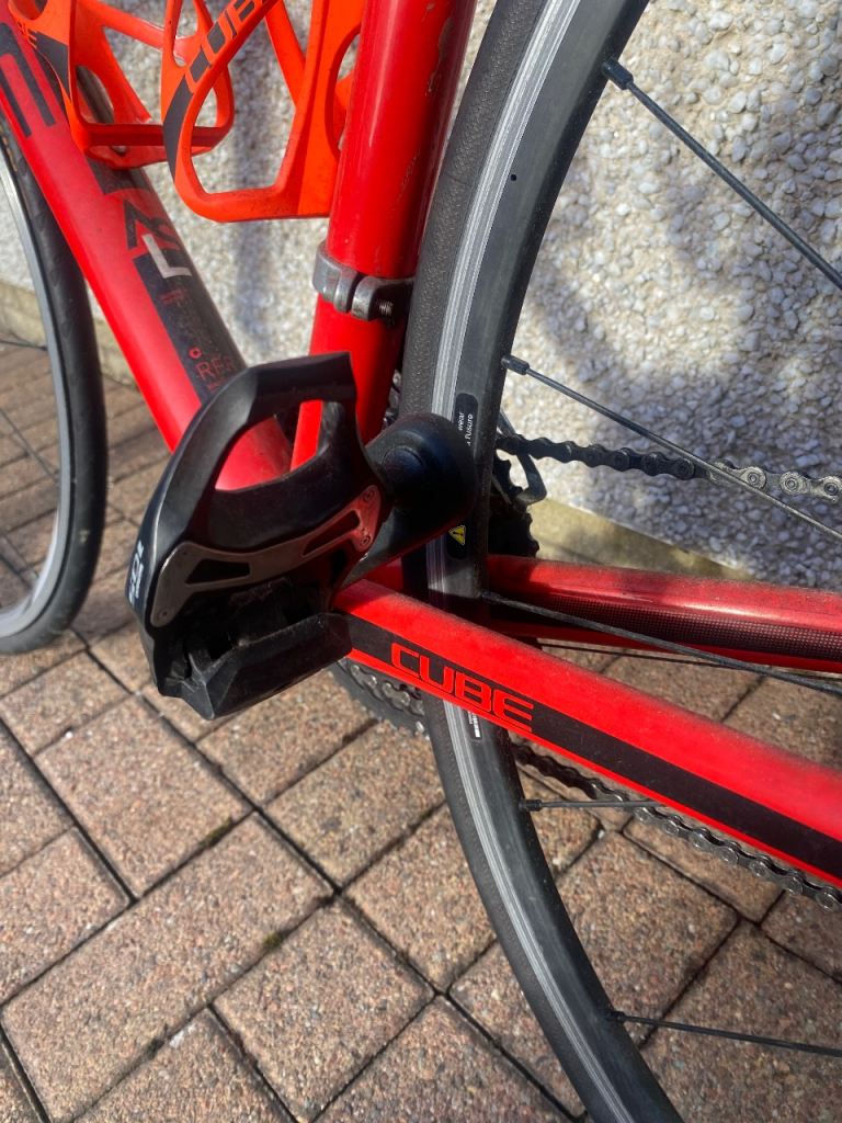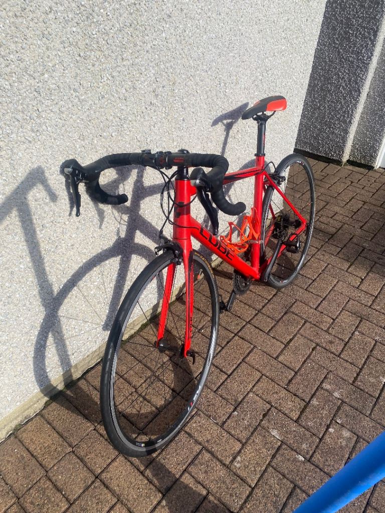 Cube road bike , shimano 105 shifters and gearing, quick release fittings, don’t cycle any longer and bikes been in the garage . Lightweight and fast when I did cycle regularly
