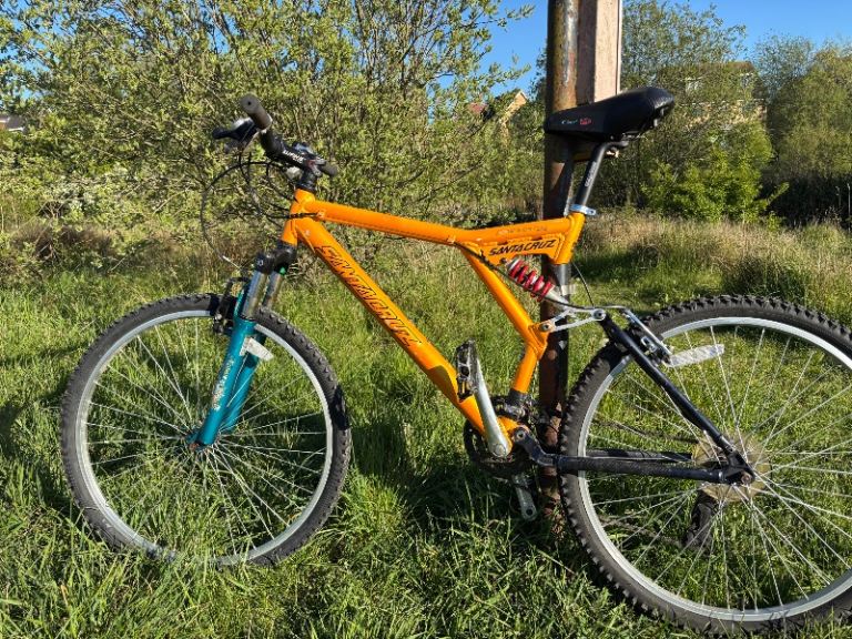 Diamondback v link 3.0 full suspension, 20 inch frame 7 gears, I brought it as it is the last owner put on the Santa Cruz stickers but from my understanding it’s a diamondback v link 3.0