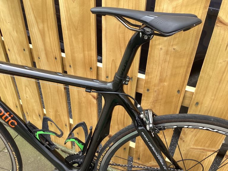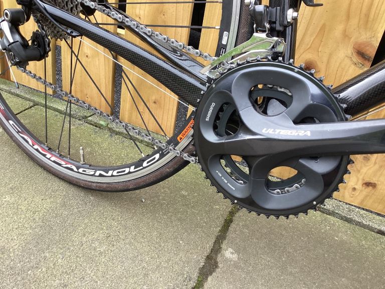 Virtually no marks on the carbon ,the only mark on the bike is the front of the R/H crank arm ( I can’t remember how I did that but possibly catching it in the wall when hanging the bike up )