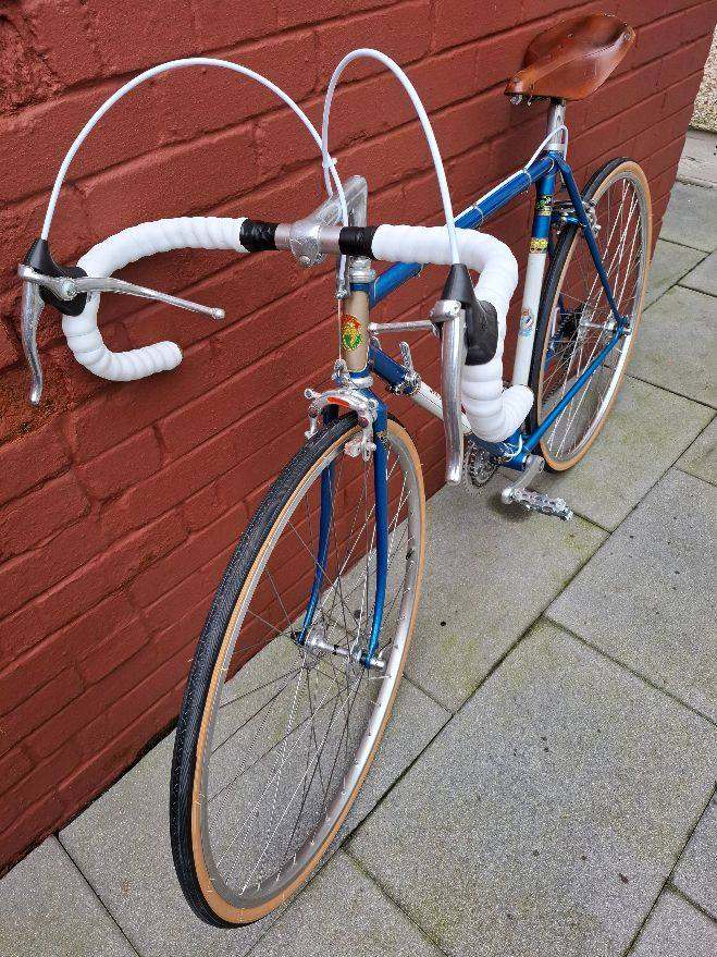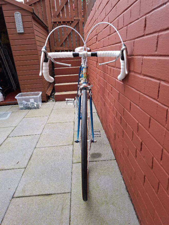 21 and a half frame continental model 5 gear rear 3 main cog ,15 in all bike was stripped cleaned and old gearing and cables removed , frame pollished everything cleaned and renewed new brakes and retaped, new gears and chain new tyres and tubes , new pedals , campagnolo , weiman brakes , never been ridden ask any questions ,