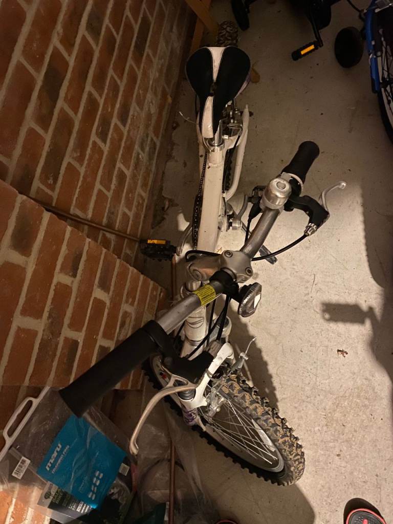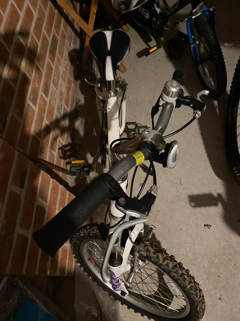 Giant brand & Quality bicycle 14-inch white with gears, Excellent condition, the ideal bike for everyday use. Soft seat. Beautiful bike. Why buy from the shop when you can buy this at a negligible price. Child out grown quickly so need space so it is advertised at low cost. Also ideal for present.