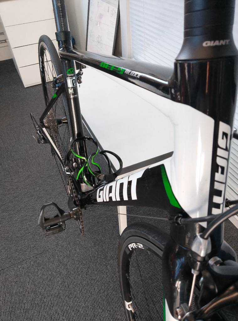 Giant Defy 0: lightweight aluminium ALUXX frame & carbon forks (total bike weight 9kg).