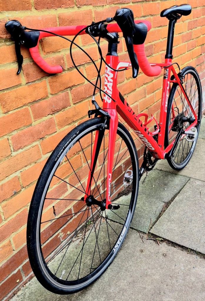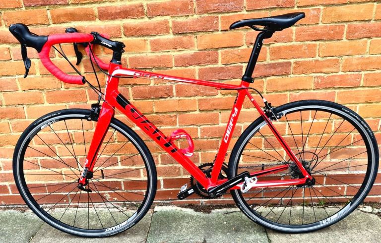 This is amazing new condition bike, with shimano sora groupset, 2×10 speed, is alloy frame with carbon fibre forks, Shimano sora derailleur, shimano clipper pedals, bottler water holder, 700c32 giant defy rims, with prove puncture tires, FSA TEMPO CRANKSET, also got 22”size frame(56cm) which is good for people from 5ft4 up to 5ft10. This bike is in good condition bike and fully services and full working order! If someone is interested you can contact me. Thanks