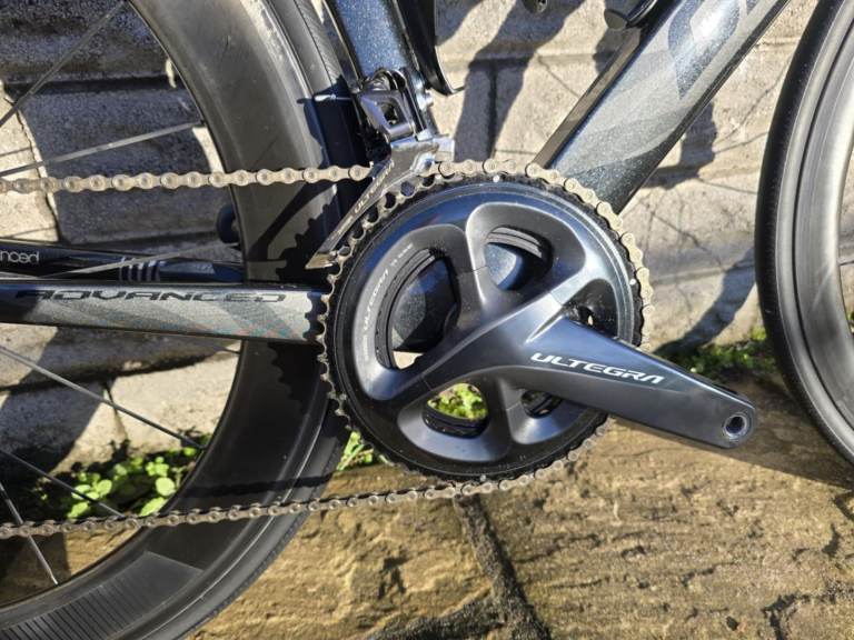Here we have a beautiful example of a truly excellent bike. The paintwork is the utterly stunning black starry night paint that truly glistens in the sun. The bike boast full shimano ultegra R8000 groupset & is in great condition throughout having obviously seen very little use.