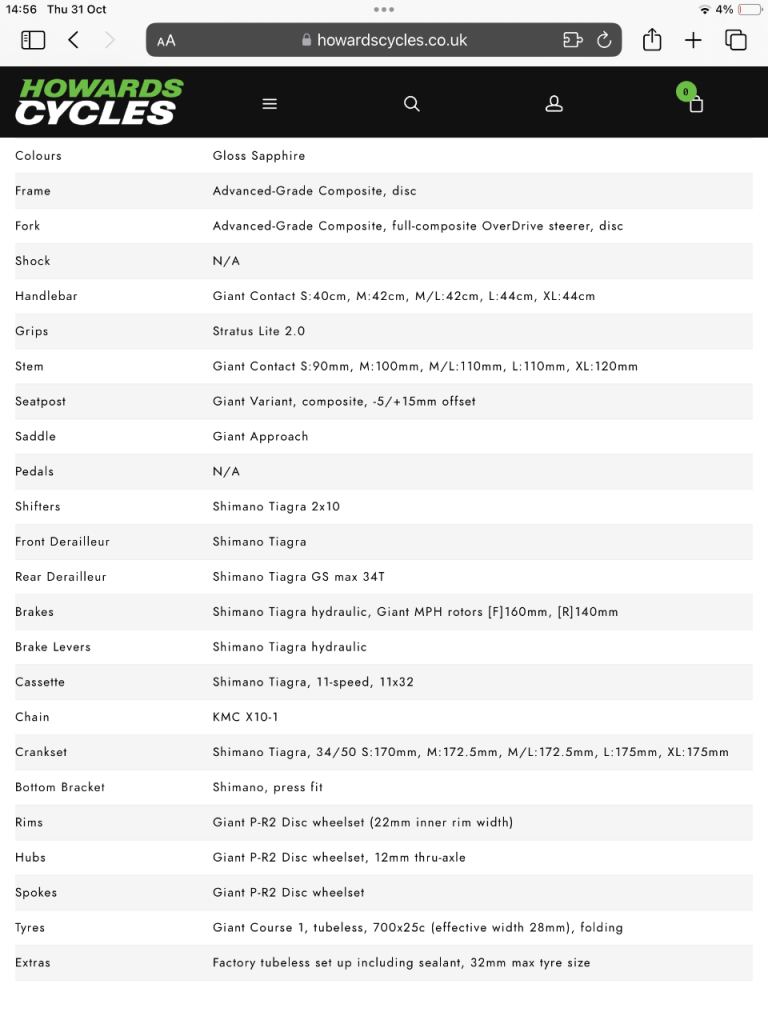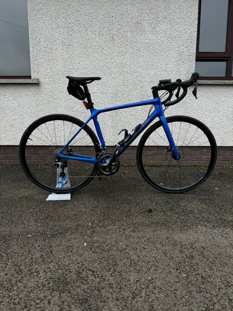 Giant road bike, size medium, in a lovely gloss sapphire blue.