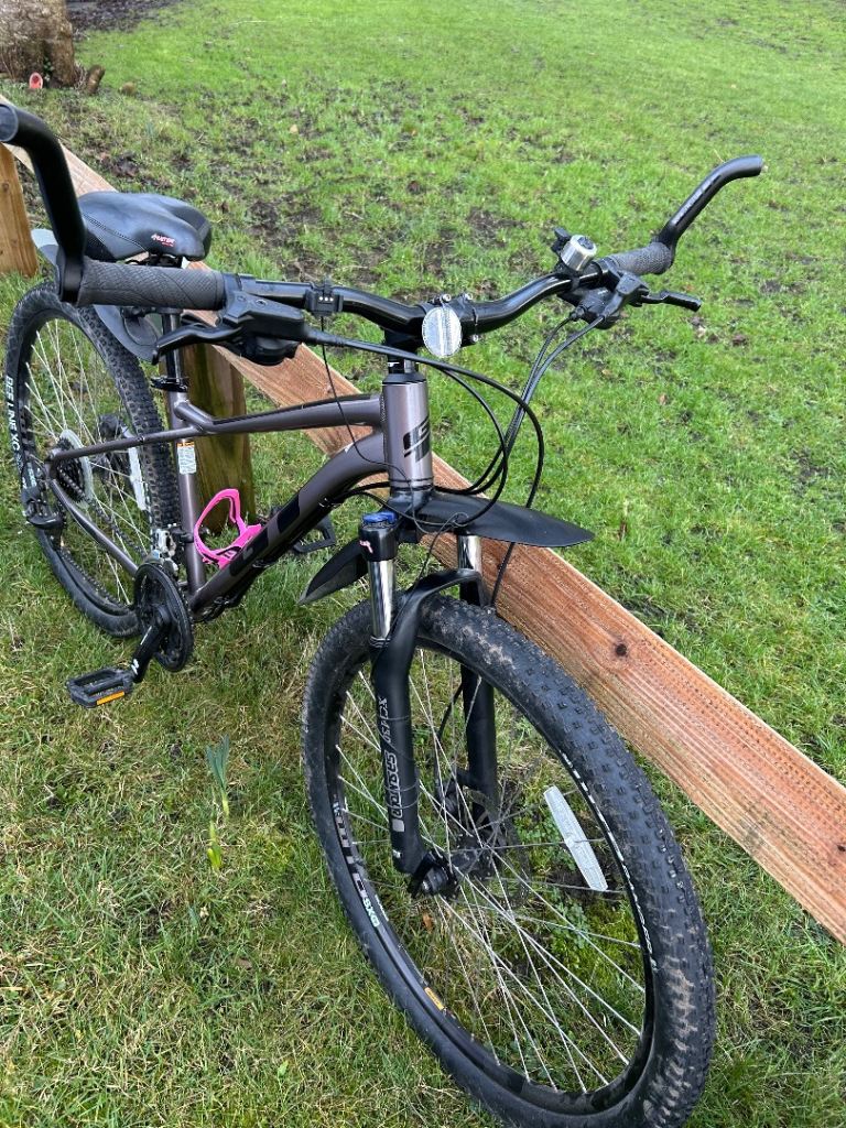 The GT Aggressor ladies' (or unisex) mountain bike in grey is a versatile, entry-level hardtail designed for recreational trail riding, commuting, and gravel paths. Featuring a lightweight 6061-T6 aluminum frame with GT’s signature "Triple Triangle" design, it offers a durable, comfortable ride.