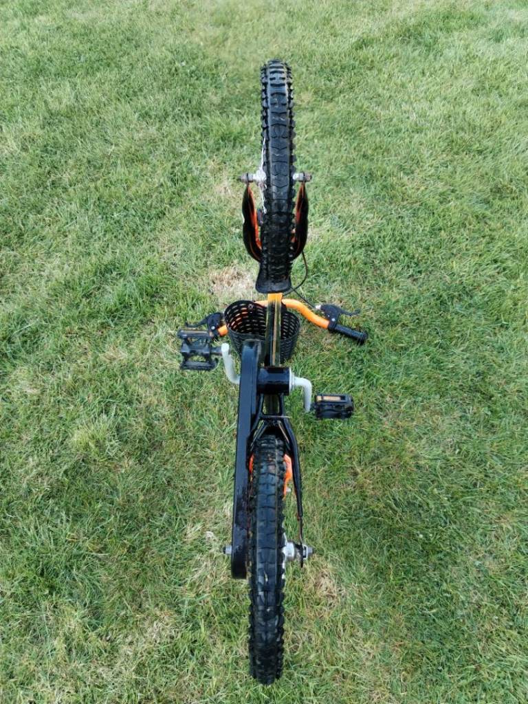Posting for under a monthKids Orange/Black bike with a clean basket for sale