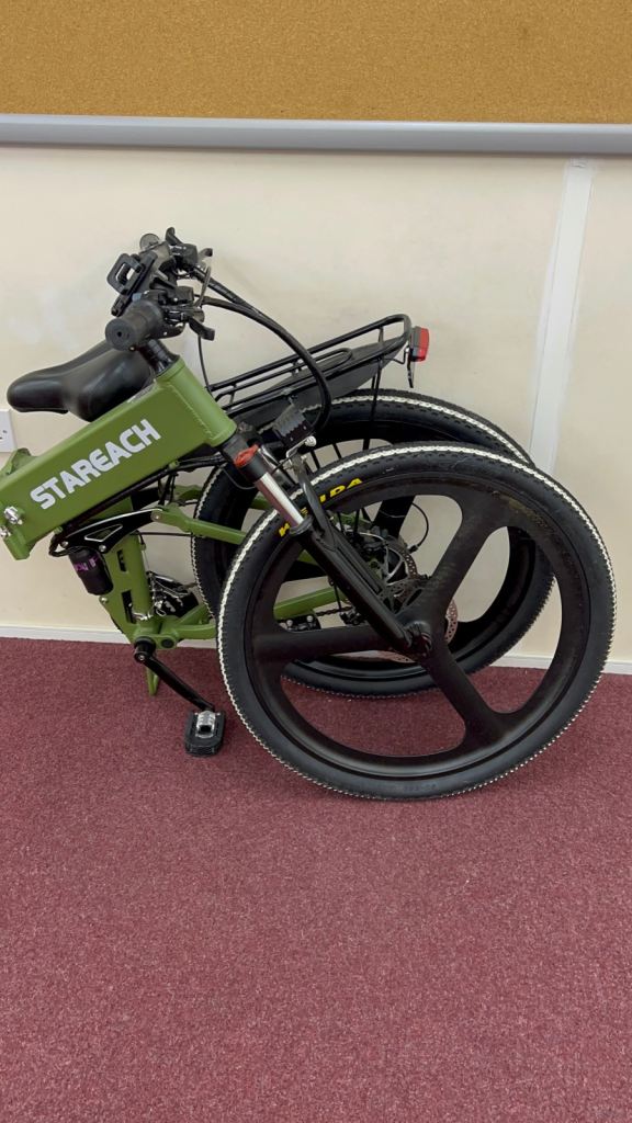 Very little used E-BIKE throttle. In great condition cost £1200 new. Easy. Fold.
