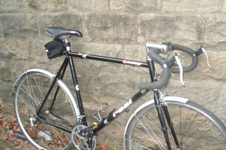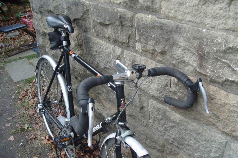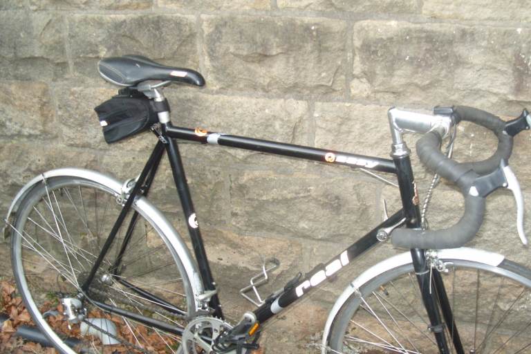 Mens Raleigh Road Bike Think its A R100 Model , 23.5 inch lugless frame 700C Alloy quick release wheels with stainless steel spokes and Alex rims and Exage hubs, seat height bfrom floor ranges between 37 to 42 inch approx so suit some one 5ft 8 and above, 14 Speed Shimano 105 gears and 52/42 Shimano 105 alloy chainset fitted with new pedals and toeclips, alloy bars and stem alloy quick release seat post fitted with a Velo Shocklite saddle, comes with full length mudguards extras include a Pump, bottle cage, cateye computer, and a small saddle bag, choice of pedals( see pictures) Ideal commuter, get fit or just go explore, A quality bike in very original condition that has just been stripped down, checked bearings regreased, serviced oiled and adjusted so ready to go, local delivery possibl for fuel costs