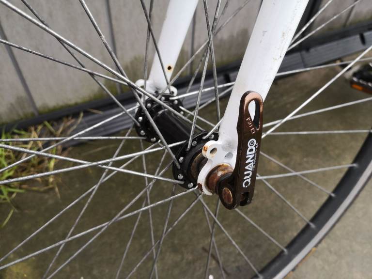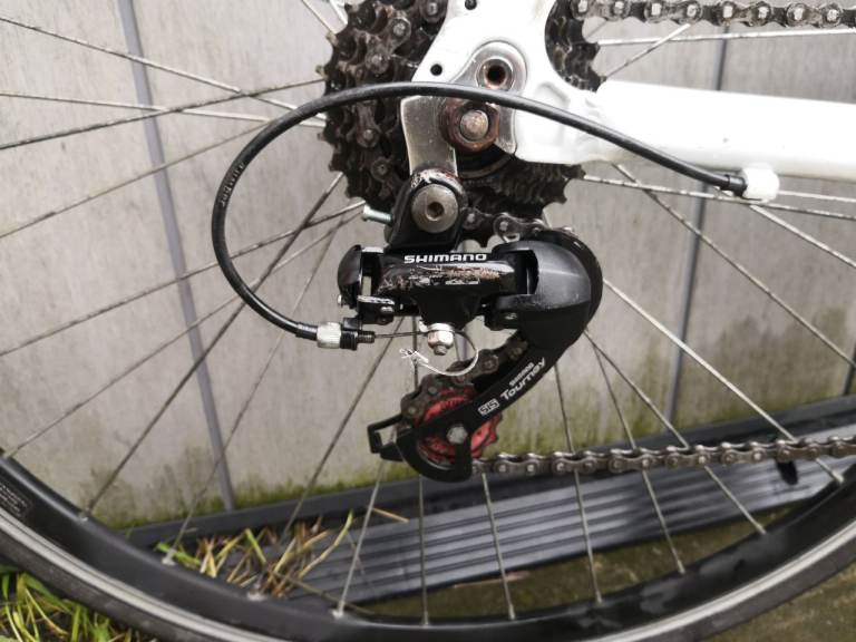 Muddyfox swift pro comp pro In white continental tyres quick release front wheel change's gear we'll ride's lovely under seat bag Shimano chain and gears collection from Bradley Stoke area