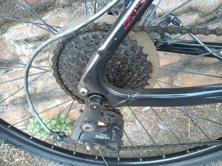 THE BAD BITS.. Few very light chips on the forks, cover for the right hand shifter is missing and is working perfectly, pedals are clunky and will need replacing, I should have spare set of pedals for this bike