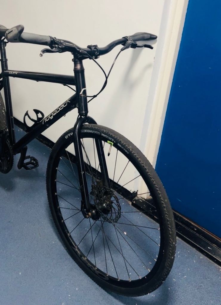 Selling my Ridgeback Storm 2021 Hybrid Bike in black with a large frame. It has only been used a few times and is in good condition