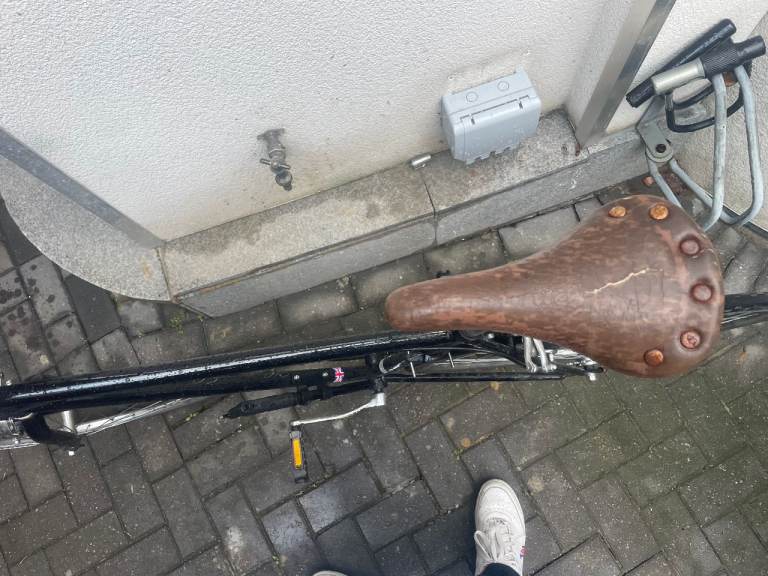 Classy frame with a comfortable upright feel, classic brown saddle. Everything works well and Low maintenance setup, minor tear on the seat which has never bothered.