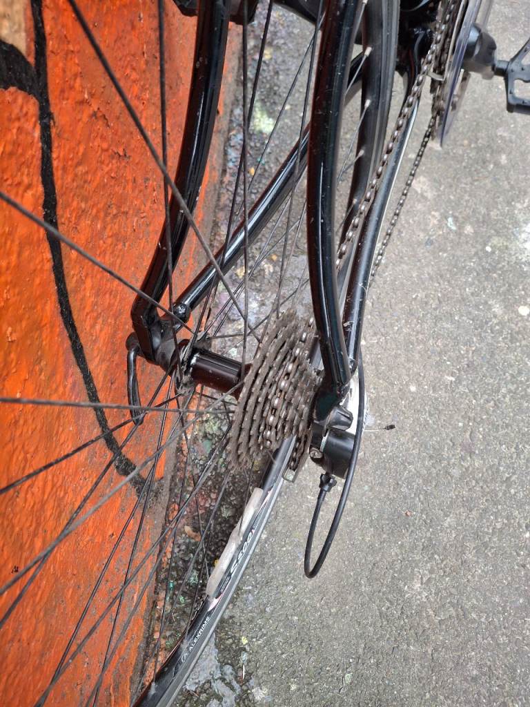 The bike is used but good general condition witha few scuffs and scrapes but fully working, an excellent ride, lightweight and smooth, ready to ride away, needs nothing doing to it. It has no extras (rack, mudguards stand etc) to keep it as lightweight as possible, it is a good fast bike to ride, tyres are 28c great for general road riding.