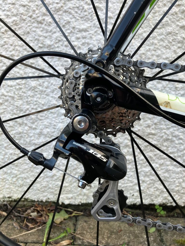 Shimano 105. 10 speed. Shimano 105 dual pivot calliper brakes.