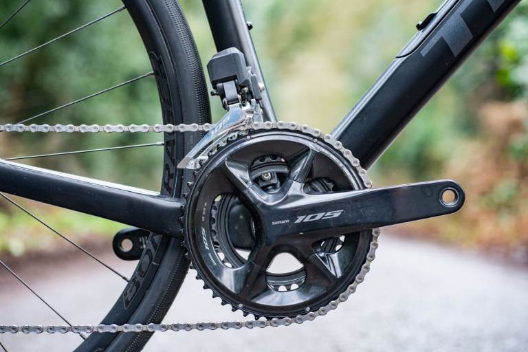Shimano 105 Di2 2x12 speed electronic groupset including the powerful hydraulic disc brakes and chainset. Super hill friendly 50/34 matched to a 34t cassette. The toughest of British and alpine climbs can be attempted