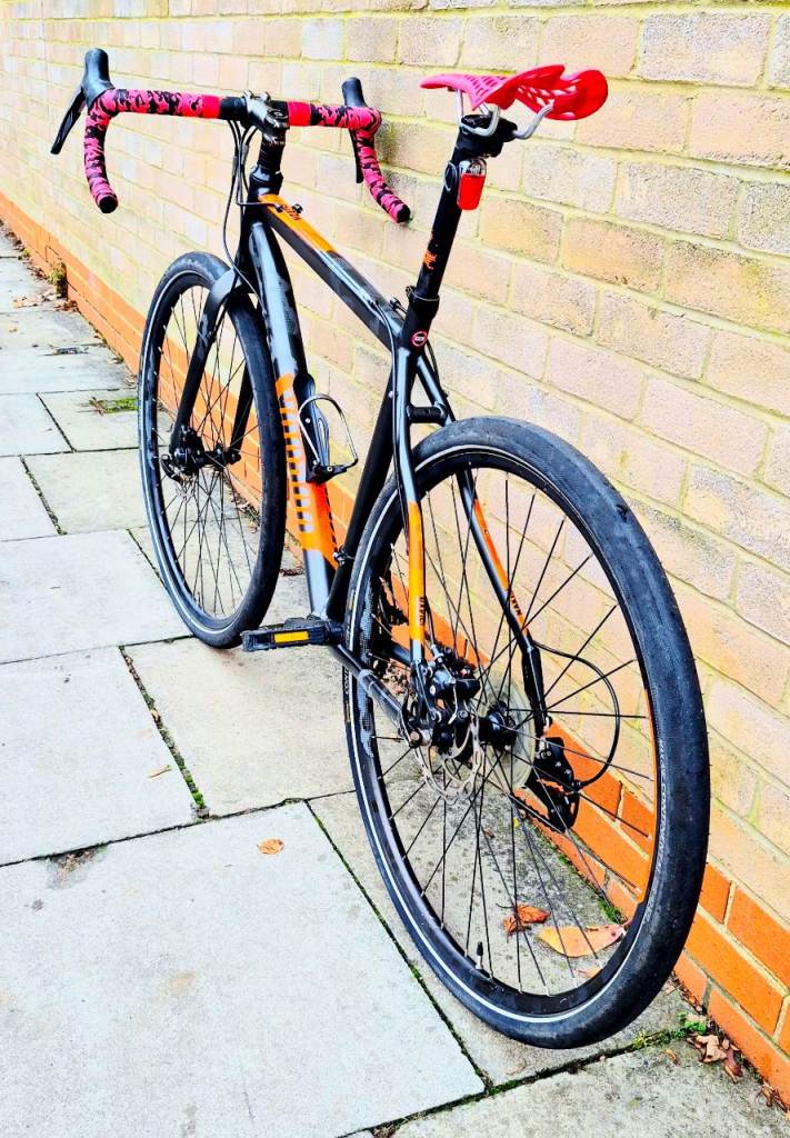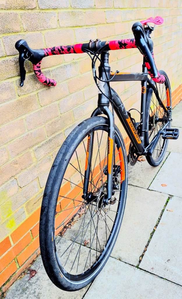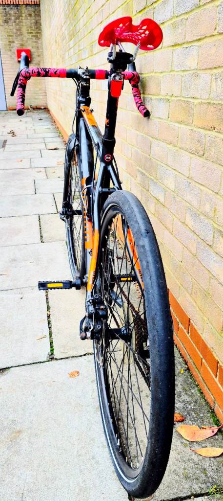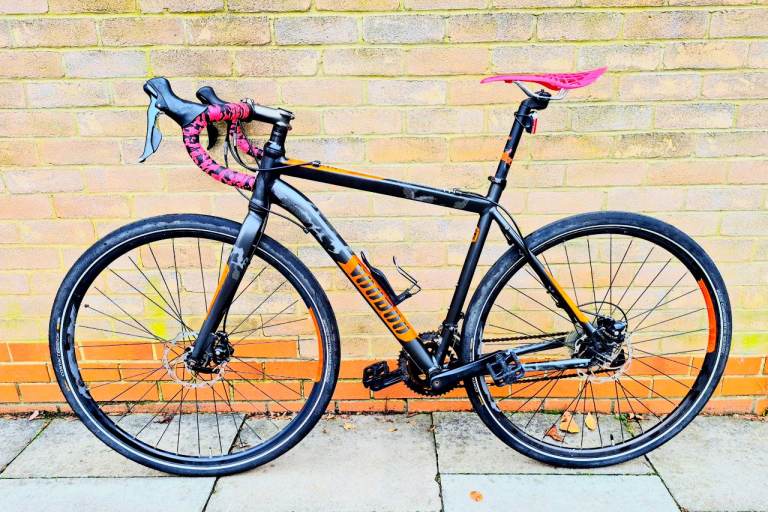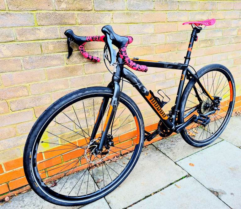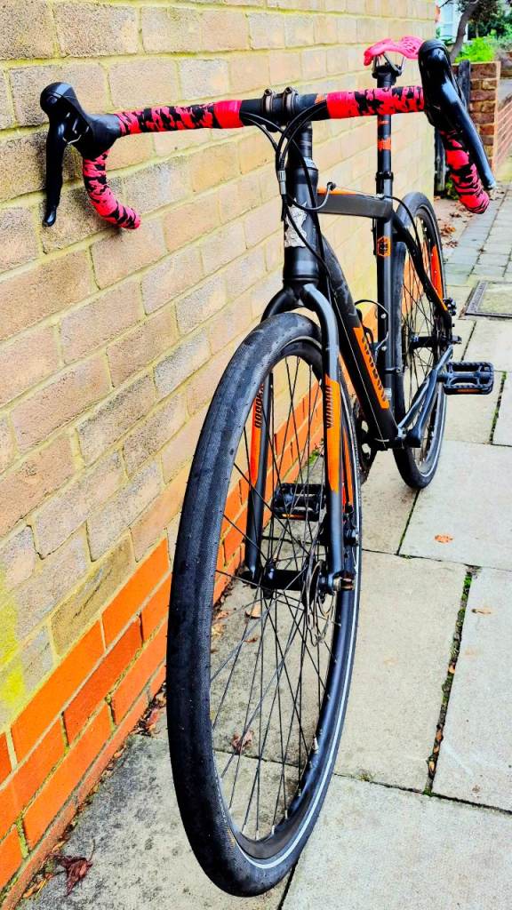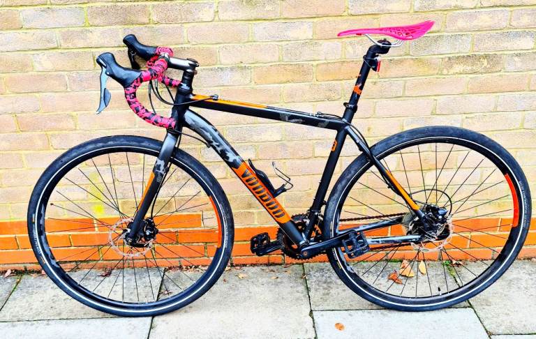 This is gravel racing bike, with front and back disc brakes, got shimano 105 groupset 3×9 27speed, shimano 105 front and back derailleur, lightweight aluminum Voodoo frame , 700c42 Nakisi gravel rims, with continental tires, Bottler water holder, new handlebar red and black tape, new red saddle, its 52cm frame which is suitable for people from 5"6 up to 5"10 this bike has been fully services with new cables and new handlebar tape new saddle and new break pads its all in working order and good condition, got one or 2 scratches nothing to serious if anyone is interested you can message me thanks