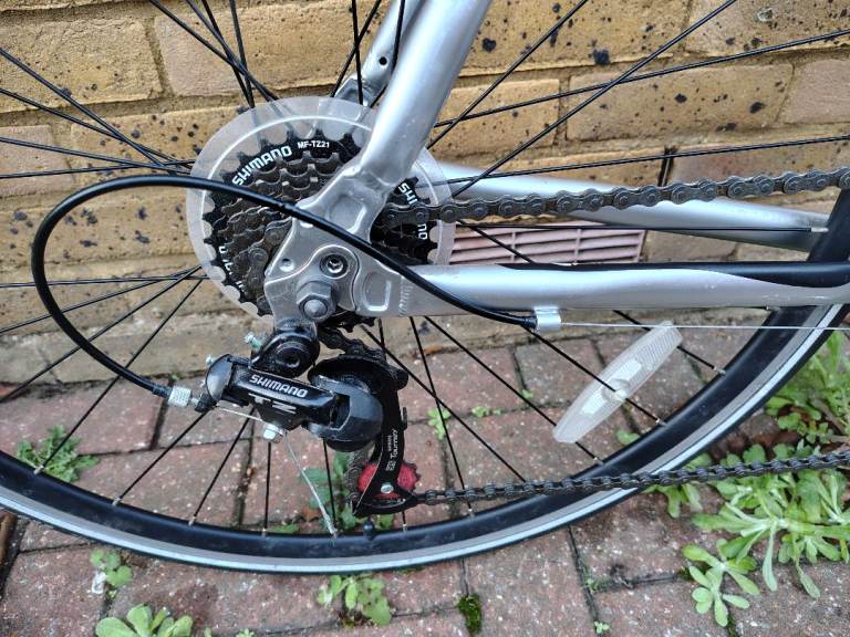 7 x 3 = 21 Shimano Tourney TZ gears all working correctly and so are both brakes.