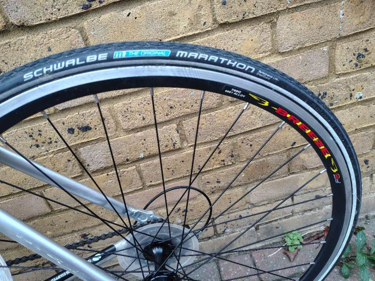 700 x 23c Schwalbe Marathon Performance Line road tyres with Greenguard puncture protection.