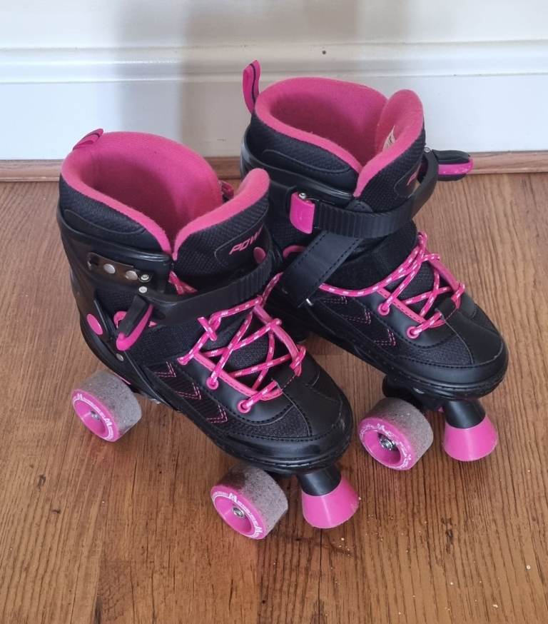 POWER Adjustable Quad Girls/Kids Skate Pink Black (Size 35-38 / UK 3-5)