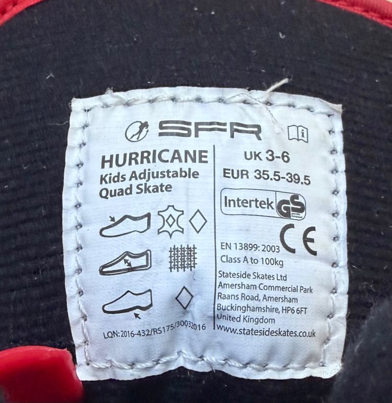 Posting for 3+ yearsSFR Hurricane Kids Adjustable Quad Skates - UK 3-6 Red