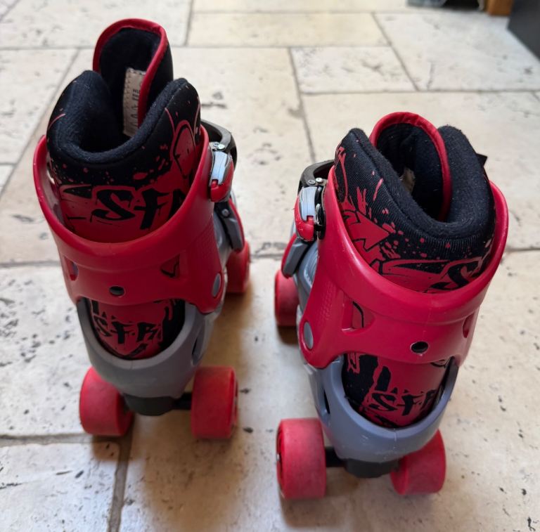Adjustable SFR Hurricane quad skates in good condition, perfect for kids.