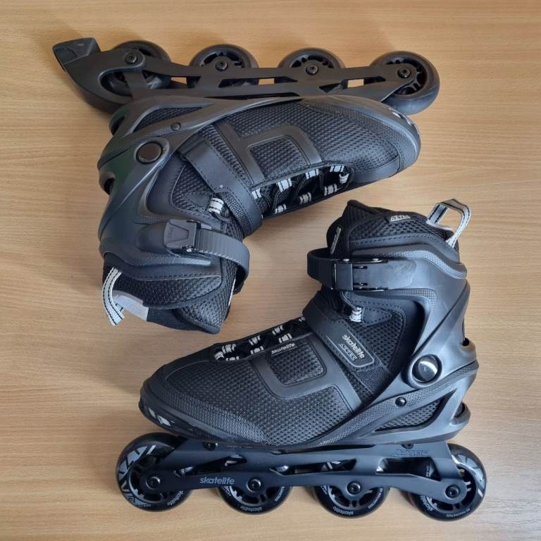 The Skatelife Aztec Inline Rollerblades in size UK 10 are high-quality inline skates designed for men. Made by Rollerblade, these skates are perfect for inline skating enthusiasts looking for a durable and stylish option. The black and silver colour scheme adds a sleek touch to these rollerblades, making them stand out on the skate park.