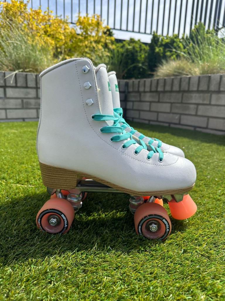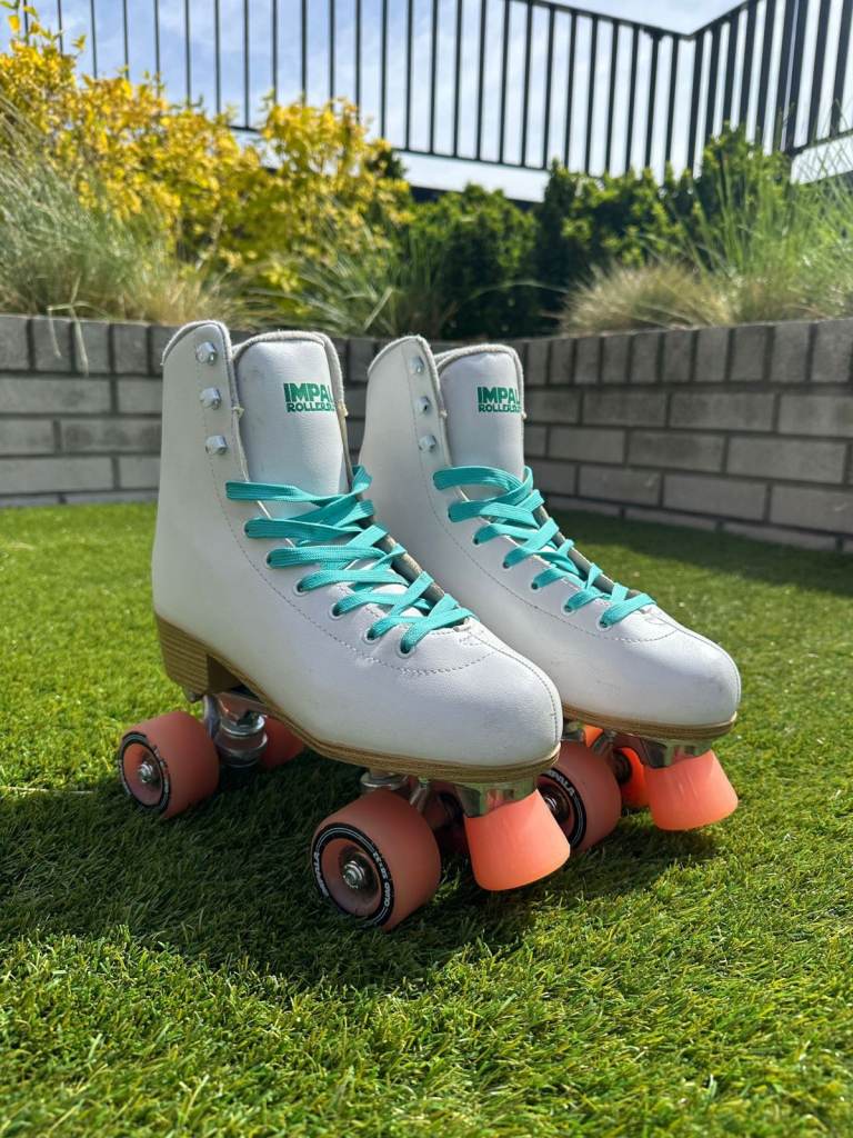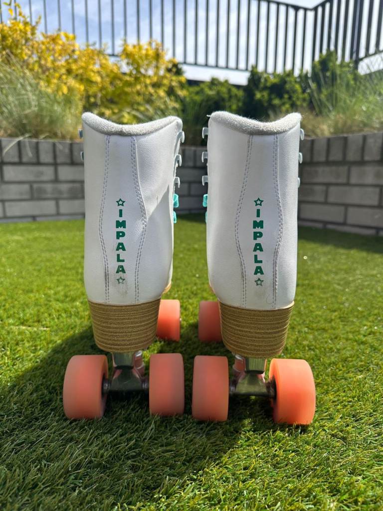 - Impala Roller Skates in white with pink wheels