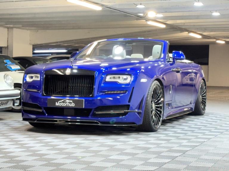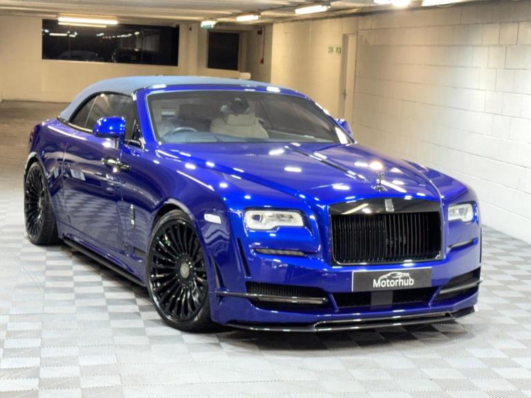 Rolls Royce Dawn finished in Salamanca Blue With Seashall Bespoke Interior that benefits from a full exterior design package by Onyx Concept as well as a choice selection of cost options from Rolls-Royce including Bespoke Audio and Driver Assistance Three. The vehicle is presented with full Rolls-Royce service historyFull details of the Onyx enhancements are outlined here: Complete Front Bumper With Carbon Fibre Lower Splitter And LED Daytime Running Lights With Carbon Fibre Housings, Sculpted And Vented Side Sills With Extended Carbon Fibre Element, Complete Rear Bumper With Carbon Fibre Diffuser Housing Branded Billet Aluminium Tailpipes, Full Exterior De-Chrome To Front Grille, Spirit Of Ecstasy, Door Handles, Window Surrounds, Taillight Trim And Boot Finisher, 22'' Forged Roulette Alloy Wheels With Self-Levelling Centres, Lowering Program And Exterior Branding. Upgrades - Veneer - Walnut Burr, Rolls-Royce Bespoke Audio, Drivers Assistance Systems Three, Navy Blue Hood, Coloured Instrument Panel Top - Navy Leather, Front Ventilated Seats, Lambswool Foot Mats, Navy and Seashell Two-Tone Steering Wheel, RR Monogram to All Headrests, Seat Piping - Centre Only, Treadplates Rolls-Royce Goodwood, Contrast Stitching. Standard Features 10.25in Colour Display - Concealed Behind an Openable Veneered Cover, 20.5GB Hard Disc for Music Files from either USB or CD Player, 20in Alloy Wheels - 7 Spoke, Airbag - Intelligent Front Passenger, Amplifier - 10x Channel 600Watt, Assist Telematics Services with One Button Actication, Auto On Headlights, Autonomous Emergency Braking, Bamboo Cashmere Headlining, Black Hood, Bluetooth Connection for Phone, CBC - Cornering Brake Control, Camera System - Side Rear and Top View, Chrome Plated Visible Exhausts, Climate Control - Four Zone, Comfort Entry System, Door Mirrors - Body-Coloured Heated and Folding, Dynamic Cruise Control with Speed Regulation Through Fuel Control or Braking, Dynamic Stability Control, Dynamic Traction Control, ESC - Electronic Stability Control, Electric Parking Brake, 3 Owners From New, Full Rolls Royce Service