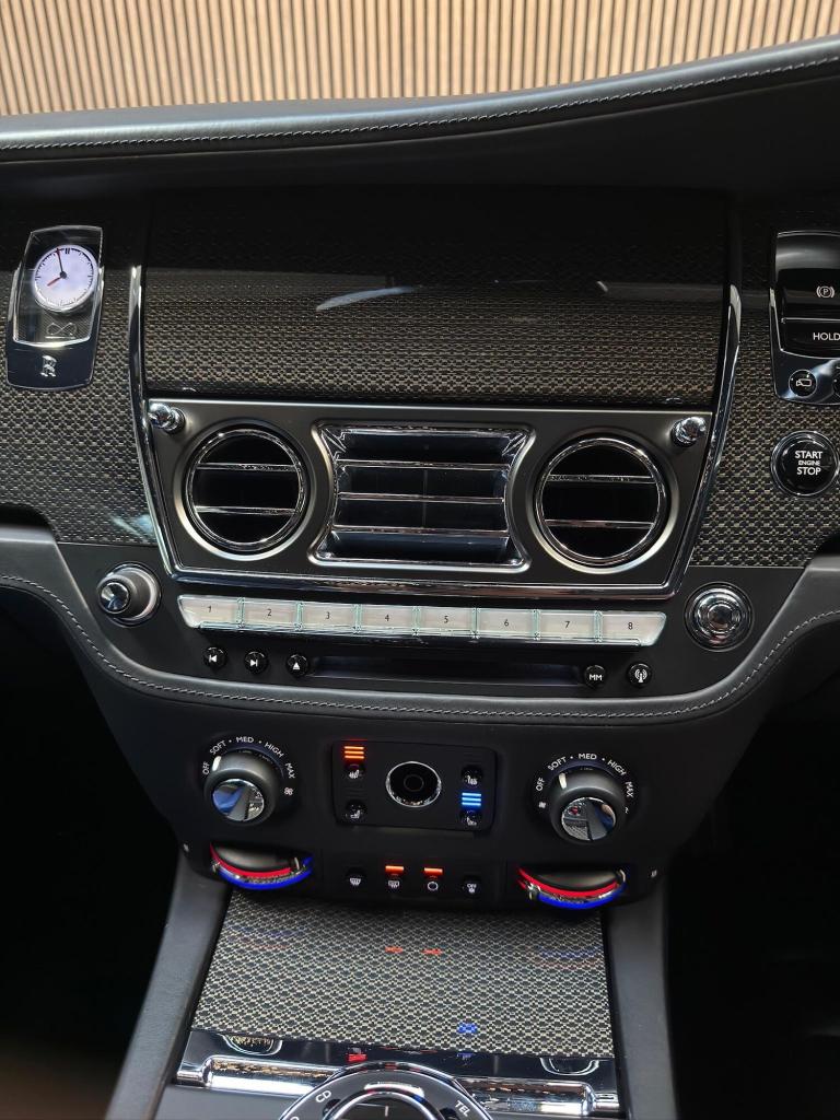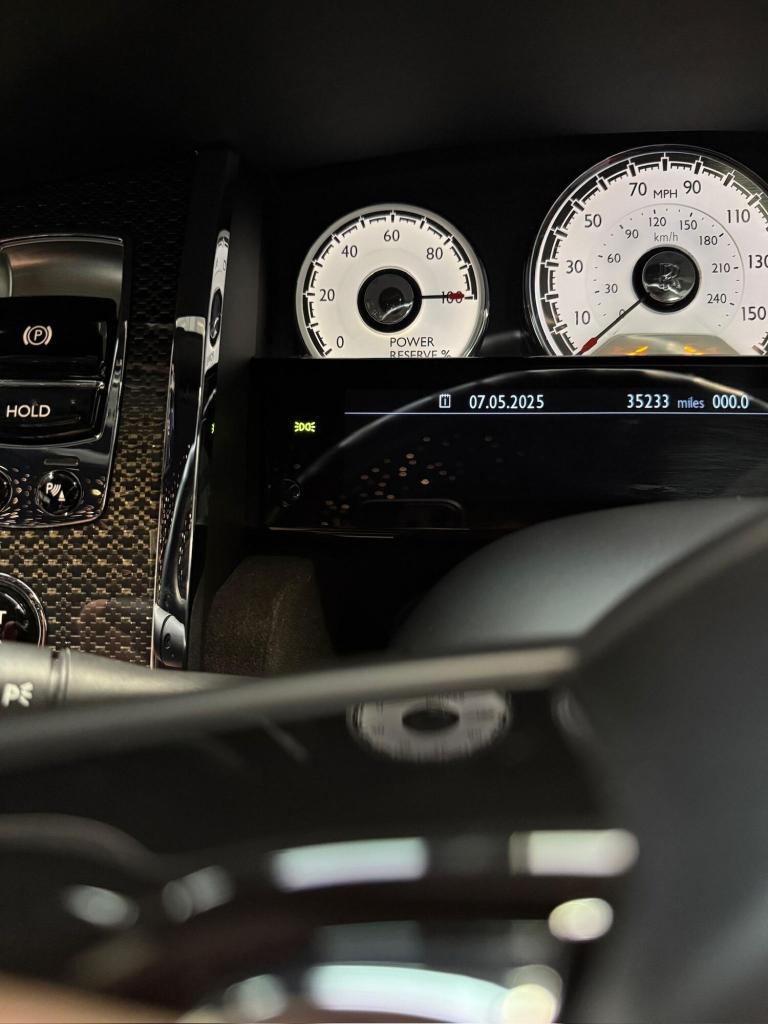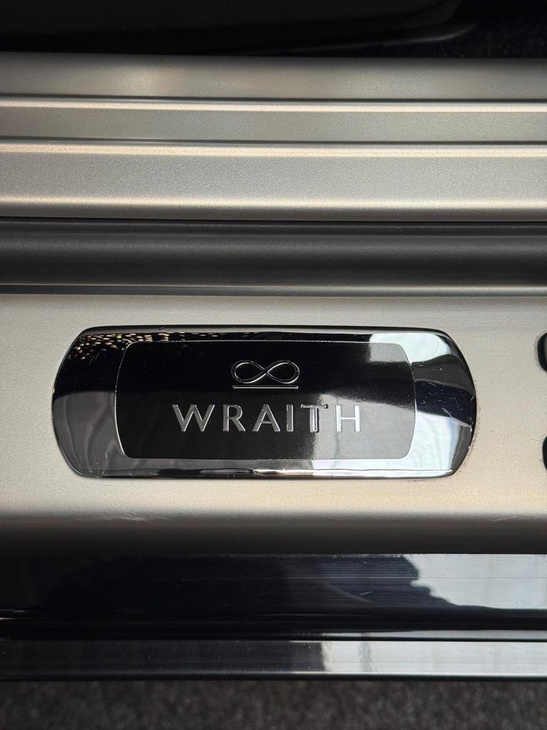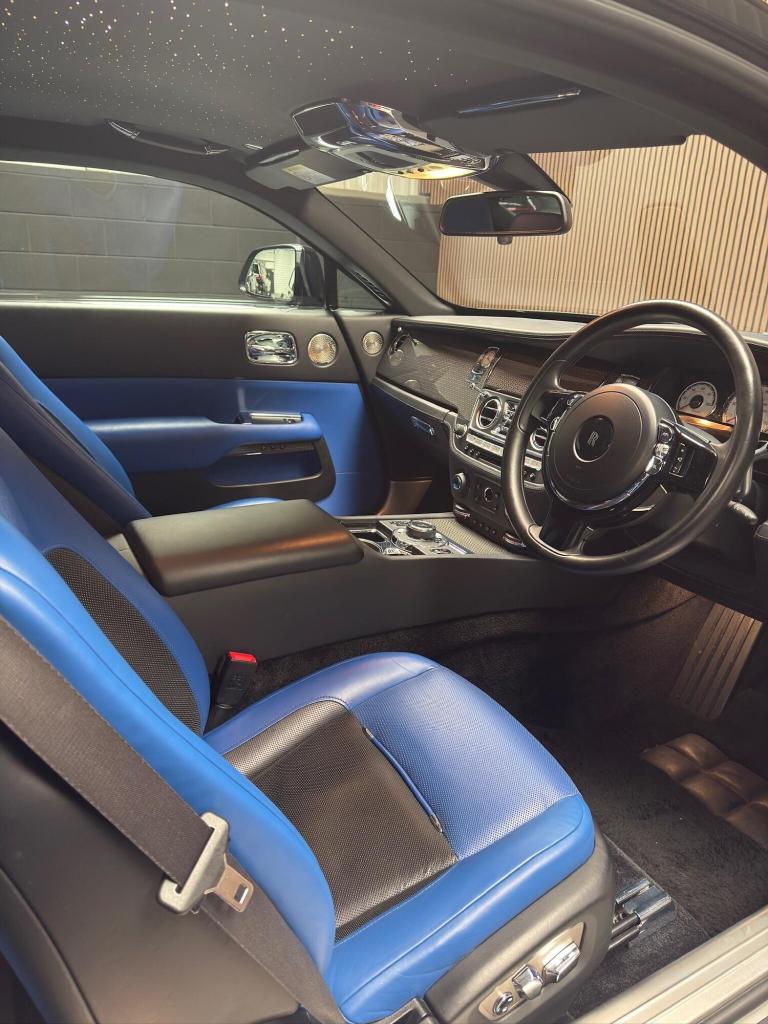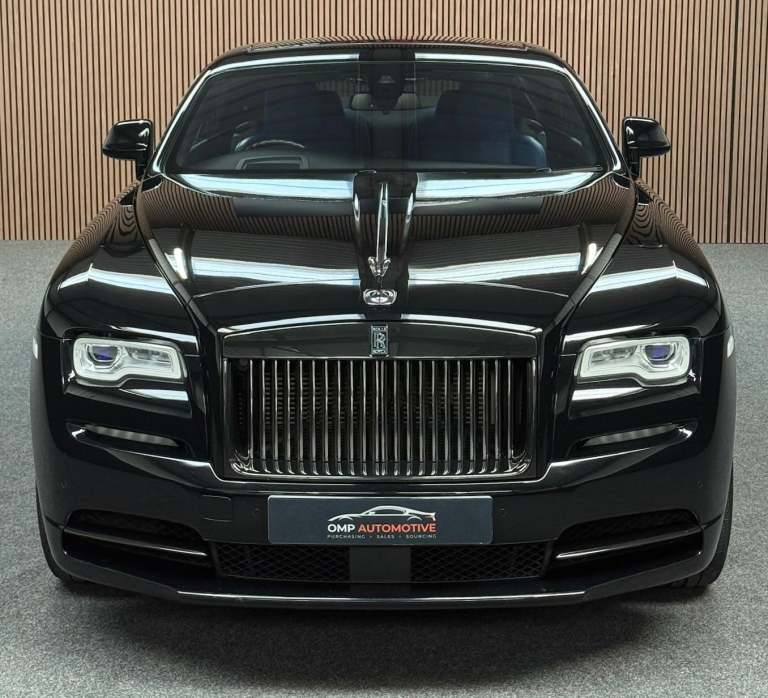 OMP Automotive are pleased to present this incredible Rolls Royce Wraith Black Badge, finished in stunning Black Paintwork, with Navy Blue and Black leather Interior. This particular example benefits from a Full Rolls Royce Service History and has recently had a Major service in January 2025.This vehicle also comes with the following impressive list of factory fitted optional extras: Starlight Headlining, 21 Alloy Wheels - Carbon Composite Wheels, Dynamic Adaptive Cruise Control with Speed Regulation, Night Vision with Person Recognition, Head-up Display, Rolls Royce Bespoke Audio System, Drivers Assistance System, Drivers Assistant Plus, Lane Departure Warning, High-Beam Assistant, Camera System - Sides, Rear and Top View, Comfort Entry, Climate Controlled Front Seats, Adaptive LED Headlights, Carbon Fibre Interior Trim, Rear Privacy Glass, Lambswool Floormats, Ambient Interior Lighting, Dark Chrome Spirit Of Ecstasy and Black Badge Tread Plates, as well as a plethora of fantastic features that come standard on the Rolls Royce Wraith Black Badge!All of our vehicles are prepared to the highest of standards and undergo a thorough vehicle health check before they are sold. Finance is available (subject to status) and part exchanges are welcomed! If you have any questions or would like to arrange a viewing, please dont hesitate to contact us!