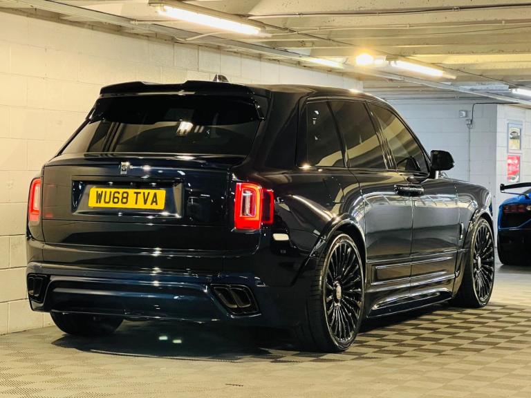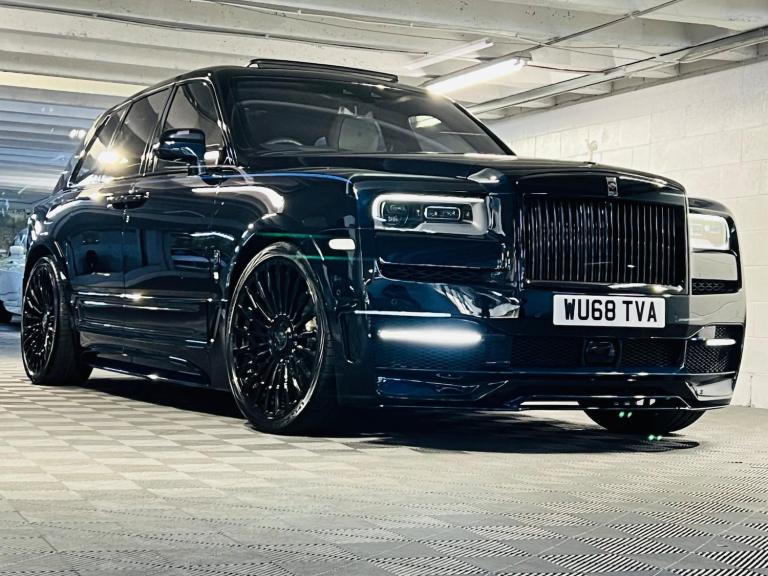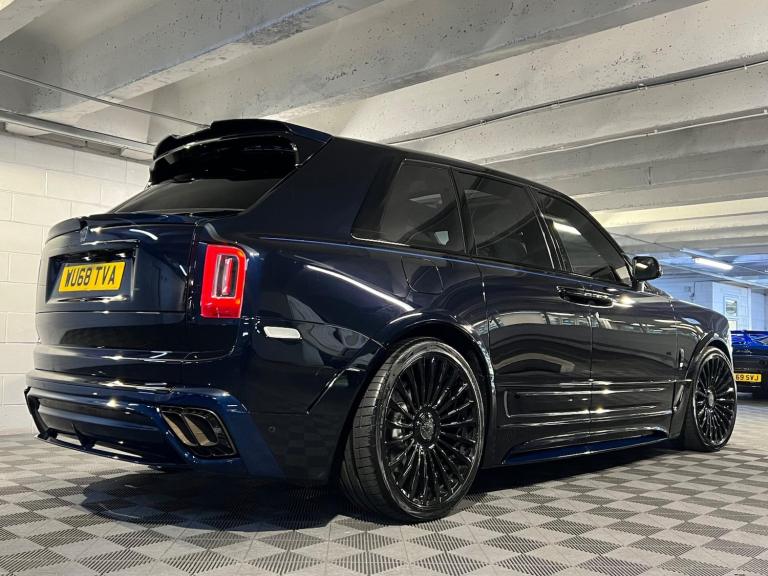 We are pleased to offer for sale this truly outstanding Cullinan that benefits from the Marquise carbon fibre exterior enhancement by Onyx Concept and features forged carbon fibre highlights along with fully colour coded exterior brightwork Cars Finished In Midnight Sapphire Metalic. The vehicle is presented with a high Rolls-Royce factory specification that includes Electric Glass Panoramic Roof, Heads Up Display, Rear Picnic Tables, Rear Entertainment, Tv Screens In Rear, Massage Seats, Night Vision, Bespoke Audio and Driver Assistance Systems as well Gloss Black Paint with Forge Blue coachline which complements the Selby Grey Interior With Cobalto Blue Contrast matching interior., Illuminated Spirit Of Ecstasy, Details of the Onyx Concept enhancements are outlined next: Full Carbon Fibre Exterior Bodykit Which Includes Complete Front Bumper Incorporating Daytime Running Lights Alongside Exposed Forged Carbon Lower Splitter, Extended Wheel Arches, 24'' Forged Wheels With Self-Levelling Wheel Centres With Forge Blue Pinstripe, Extended Side Panels With Exposed Forged Carbon Side Blade, Exposed Forged Carbon Extended Roof Spoiler, Exposed Forged Carbon Tailgate Spoiler, Complete Rear Bumper With Diffuser Housing Machined Aluminium Tailpipes And Exposed Forged Carbon Rear Blade, Full Exterior Branding Pack And Full Exterior Colour Code To Brightwork That Covers Front Grille, Window Surrounds, Door Handles And Rear Tailgate Trim, High Spec Model From Factory, 2 Owners From New, Full Rolls Royce Service History, Onyx, Urban, Novitec, Mansory, Revere