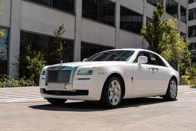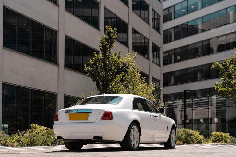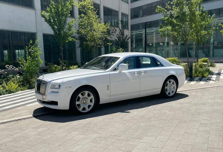 Rolls Royce Ghost wrapped in white. Only wrapped last year. Stunning car. Original Silver bonnet not wrapped. Original colour Mauve. Pictures are included of the original colour too. Current private plate not included in the sale.