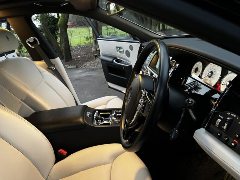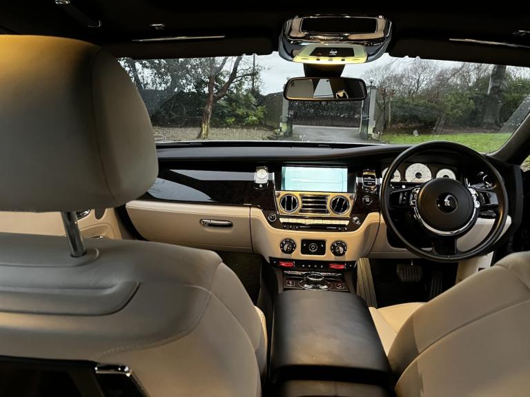 Rolls Royce Ghost Series 2 Face Lift 6.6 V12 In Black Metallic with Satin Silver Bonnet Finish, Cream Leather Electric heated seats with Rolls Royce Emblem in Headrests in Contrast Stitching, Satellite navigation Navigation, Soft Closing Doors, Head Up Display, USB and Bluetooth, High Beam Assist, Tele Services, Mileage Sub, Rear View Camera with surround view, 2xRear DVD Theatre Configuration with under floor ambient lighting, Adaptive LED Lights, Panoramic Sunroof, Picnic Tables, Opted Deep Pile Mats. 21'' 7 Spoke Alloys in Polished Black Finish. Key Operated Electric Boot with Closing aids, Driver Assistance Package 1, DAB, Tyre Pressure Monitor, Lane Departure Warning, S5 Tracker Installed, Plus much more added, please enquire.6 Services at Rolls Royce. All Our Vehicles Come With A Full Multipoint Check & RAC Warranty. FULLY HPI CHECKED,PART EXCHANGE WELCOME,WITH FINANCE AVAILABLE WITH NO DEPOSIT TO PAY IF REQUIRED, All our vehicles for sale, comes with a comprehensive RAC approved warranty backed up by all the franchises with 12 months RAC break down cover added at no cost, Knowing you in safe hands anywhere in the uk.247. As we are an approved recognised and accredited RAC franchise dealership. Our opening times are by appointment only shown on our website, but can be varied to suit you, and your very busy day and the times you have, so please call and talk with us, and we will make arrangements to suit you. Outside of our opening times if required We are always here to help. Thank you