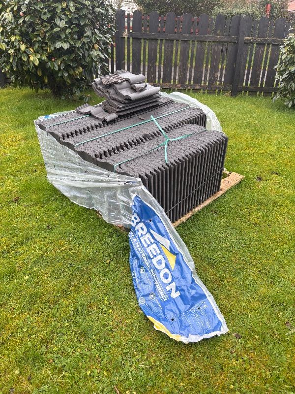 95 full grey double Roman/double roll profile concrete roof tiles.