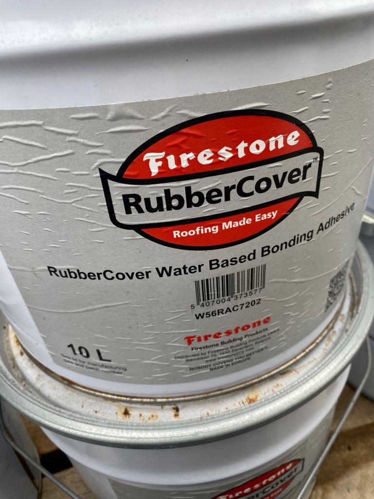 Brand new tubs of firestone rubber roofing adhesive , 10 litre tubs , price per tub