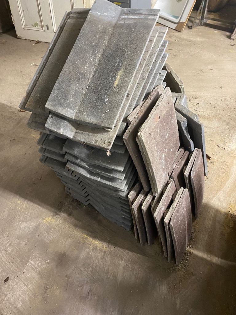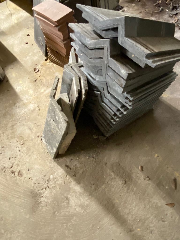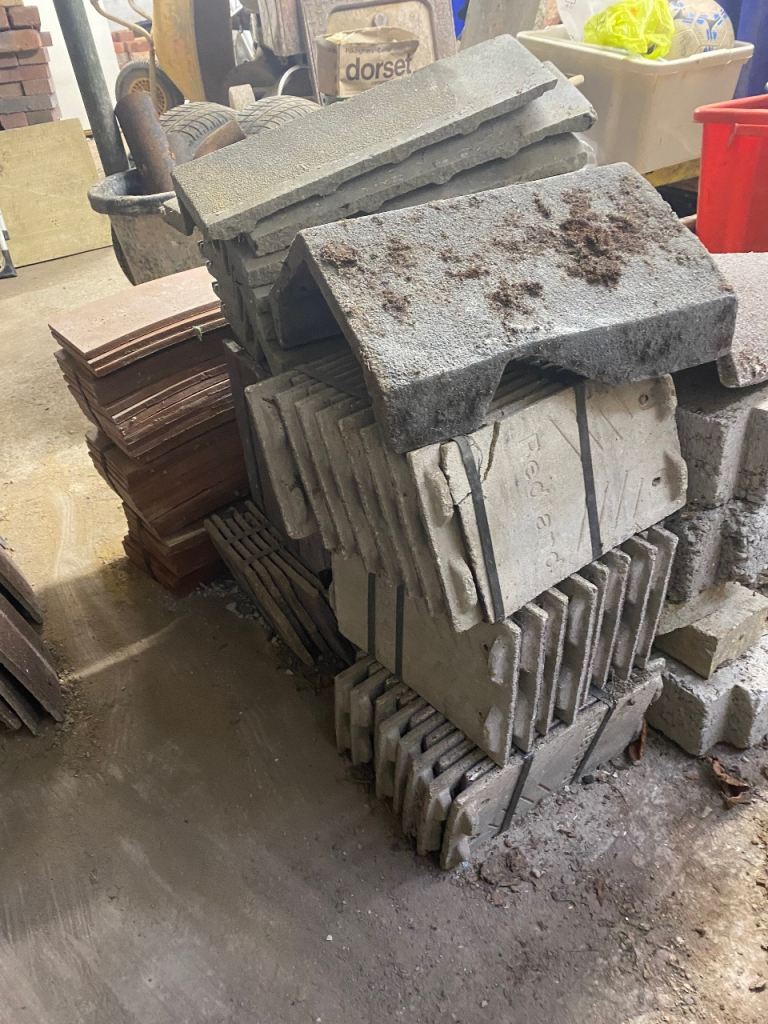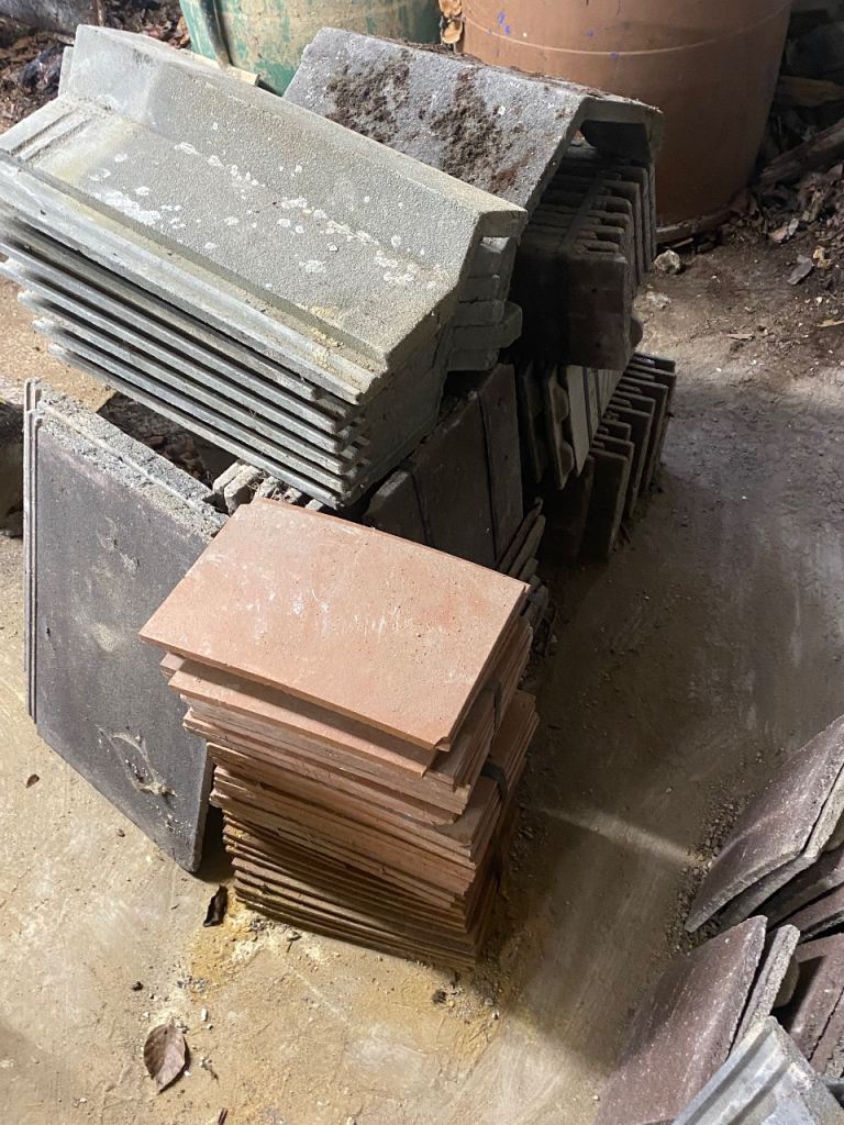 Offering a varied batch of used and unused roof tiles, including standard and ridge tiles.