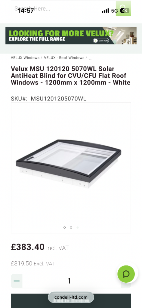 Velux solar anti heat blind 120x120cm to suit flat roof window