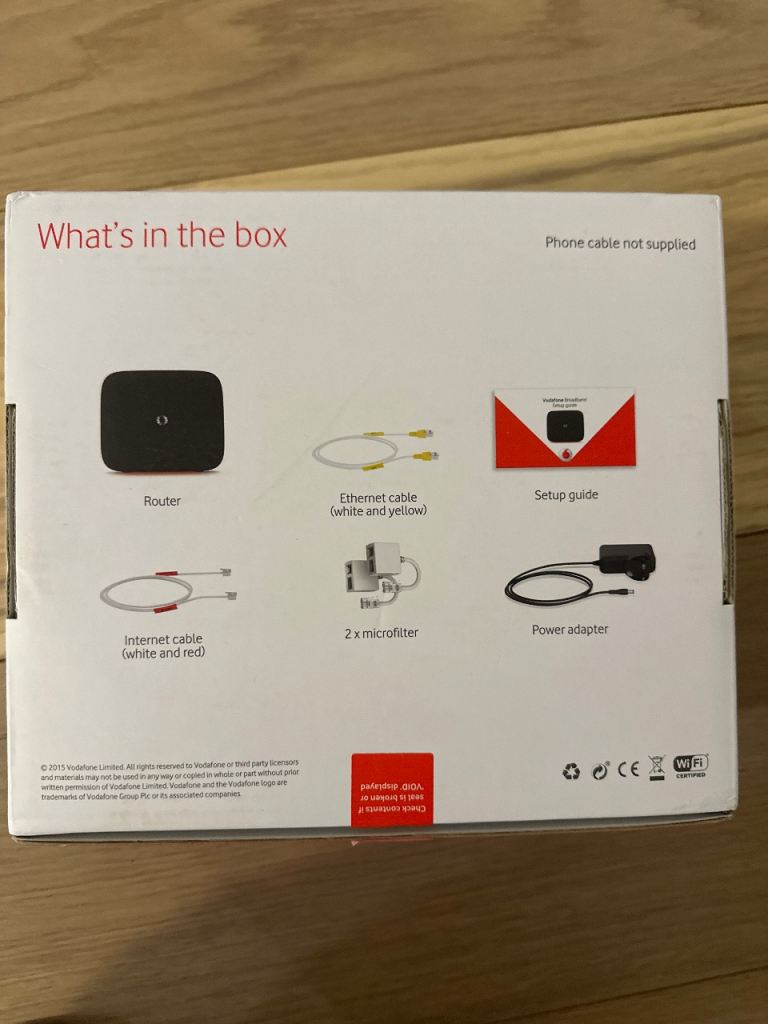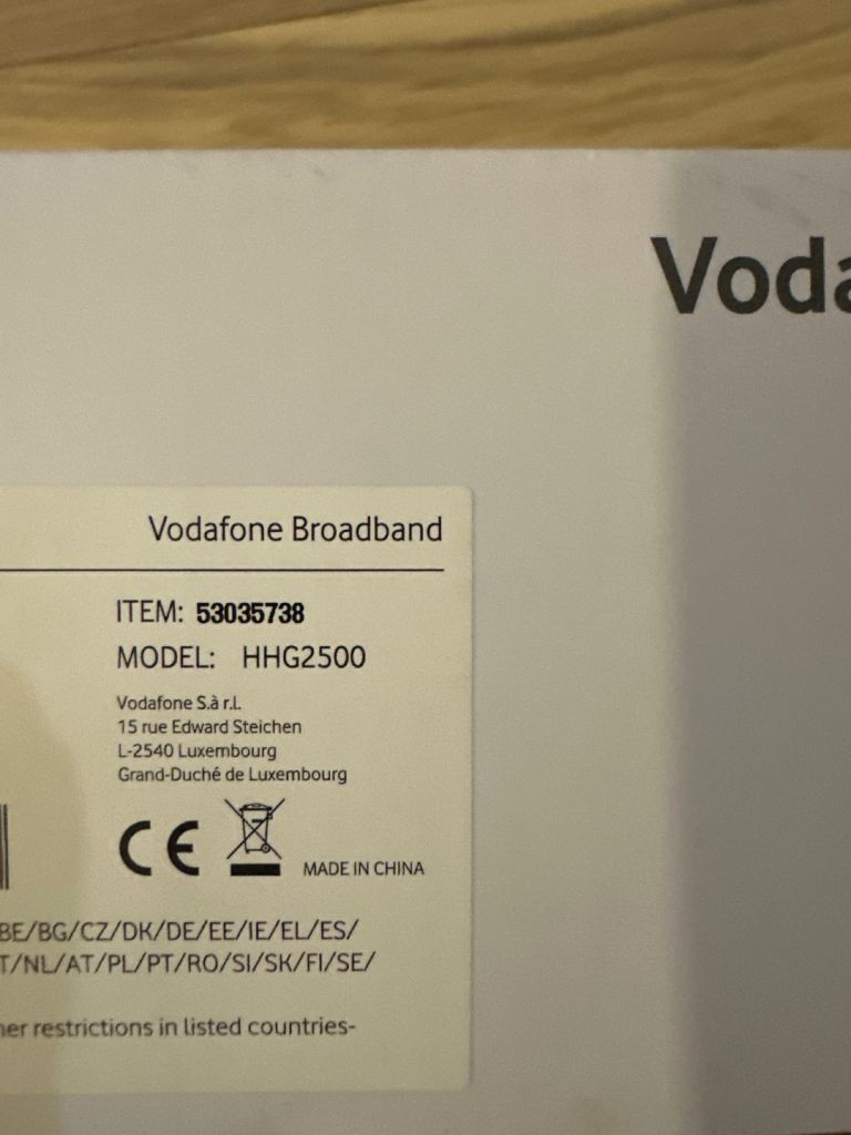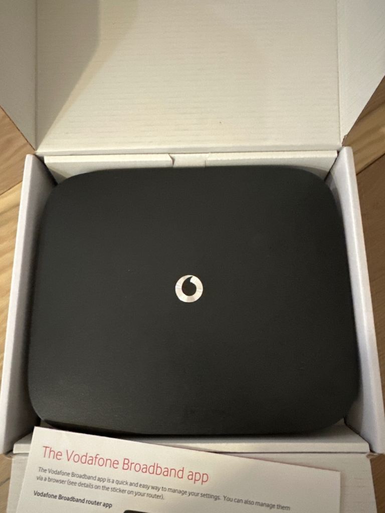 Vodafone Broadband router model HHG2500 with cables etc.