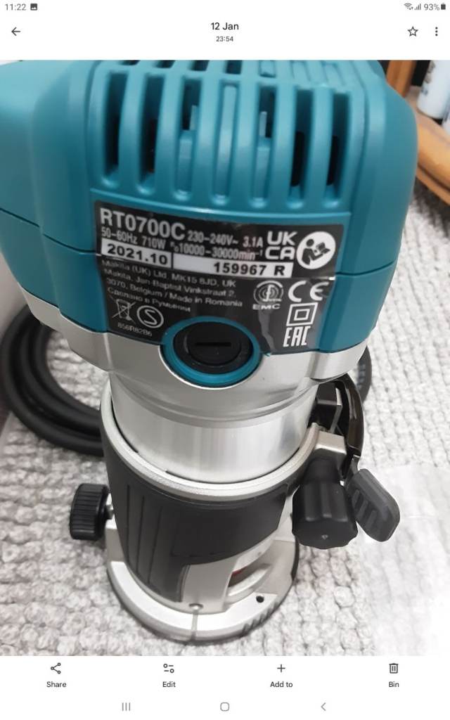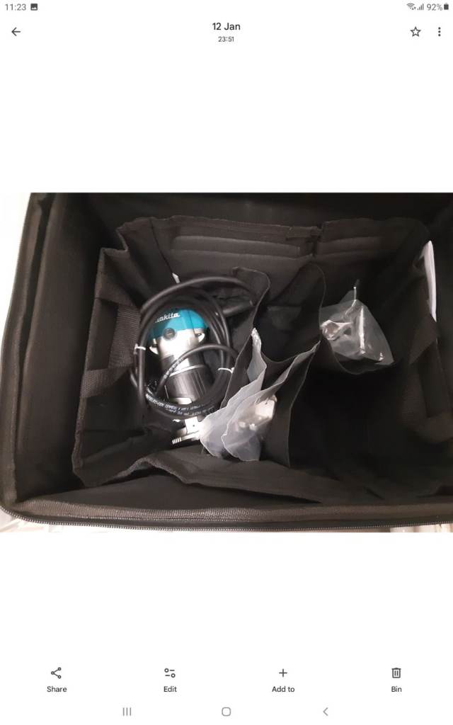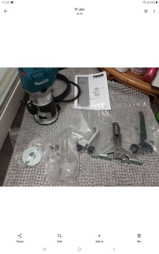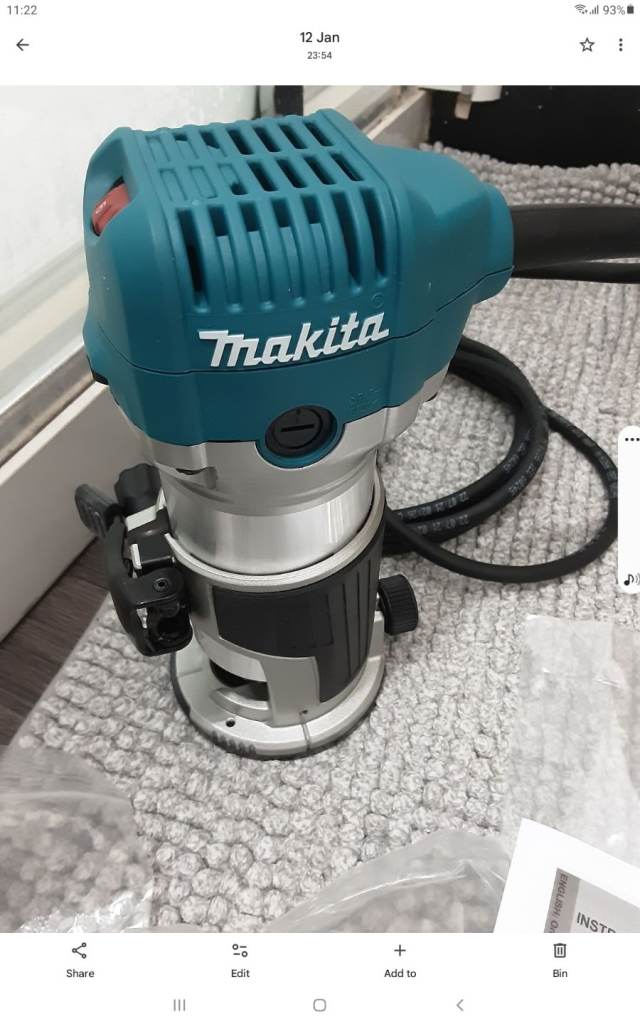 Makita router laminate trimmer ,brand new including carry bag ,accesories see pics for details ,what you see on pic is all included.carry bag has storage pockets and can be folded flat.