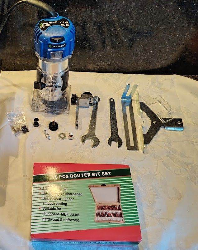 VARIABLE SEED ROUTER TRIMER AND BOX OF 15 ROUTER BITS