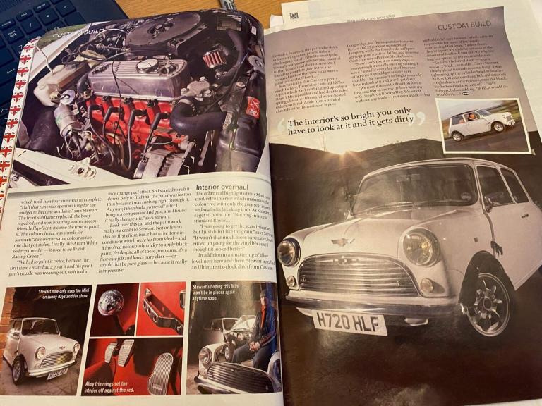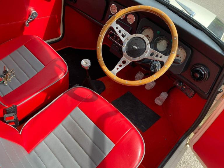 BEAUTIFUL COOPER WITH 6 PAGE SPREAD IN MINI MAGAZINE!, FULLY REBUILT 1275 BLOCK REBORED , A-PLUS WITH DOUBLE VALVESPRINGS AND STAGE 1 MINISPEED KIT. POLISHED CRANK NEW RODS AND PISTONS BIG END AND MAIN BEARING, STARTS ON THE FIRST TURN OF THE KEY AND CARBS ARE SET UP TO PERFECTION MAKING IT A VERY USER FRIENDLY CAR! THE CAR IS FINISHED IN ARUM WHITE WITH A BLACK ROOF AND GROUP 2 ARCHES, MINILITE ALLOYS WRAPPED IN YOKOHAMA A359 TYRES, THE CAR IS ALSO FITTED WITH A 2 PEICE FLIP FRONT. THE INTERIOR IS FULLY CUSTOM WITH RED/GREY VINYL SEATS DOORCARDS, RED CARPET , MOTO-LITA WOODEN STREEING WHEEL, ULTIMATE SIX-CLOCK DASH WITH MAGNOLIA INSTUMENT FACES, 500 STYLE GEARKNOB, ALLOY PEDAL EXTENSIONS AND ALLOY DOOR FURNITURE.