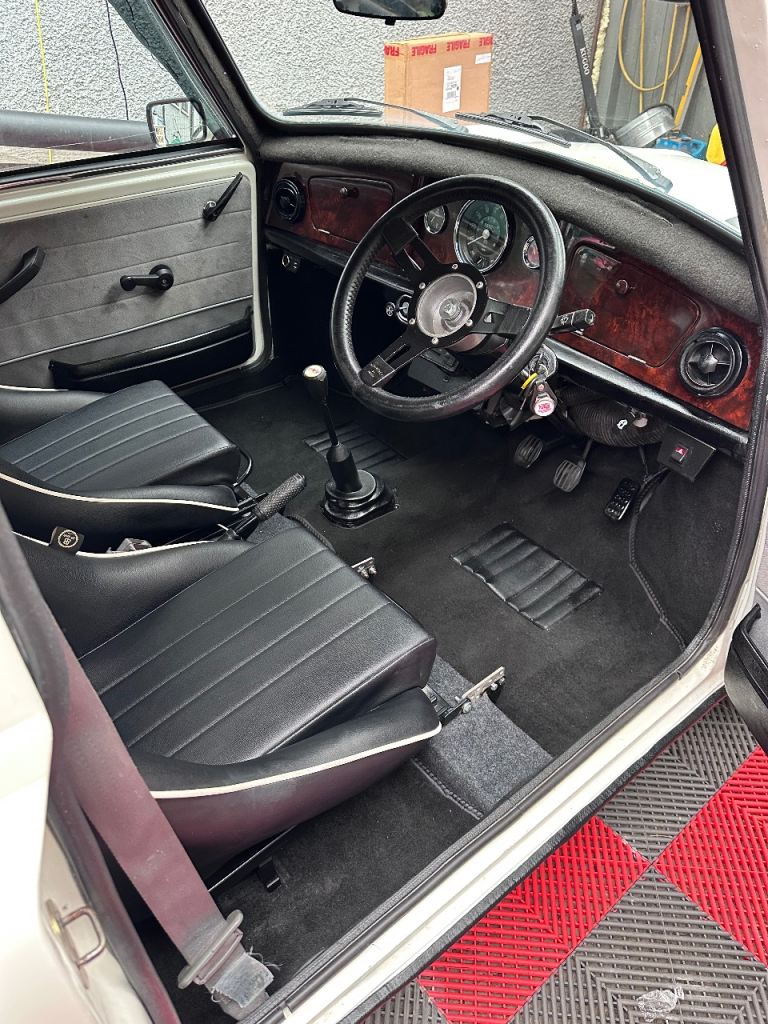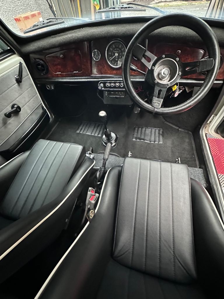 1992 Classic Mini Mayfair 1.0 (998cc) carb engine with only 66,000 miles from new. Mot to September. It was fully restored by a previous owner in 2019 and has done only 5,000 miles since, and only 20,000 miles in the last 20 years!! It has 13x8 minilight alloys with 4 matching Bridgestone Potenza tyres that are like new! Mountney classic steering wheel and gear shift. 12v charger and 2 usb sockets for charging phones etc. BB Classic clubman seats. It has Fuel / temperature and voltage gauges and unusually they all work!! Upgraded led headlights and spotlights. Ive been lucky enough to own a few of these over the years and this is without a doubt the nicest one I’ve ever driven. It has full sound deadening throughout inc roof / floors/ boot / engine bay etc and as such it’s very nice and quiet to drive (for a classic mini) This is not a show car (but it’s very clean) it’s not show car priced!! This Mini is a little gem and gets admired everywhere it goes! Poss take swap / px something interesting but only for sale as I’ve seen something else I want. More pictures to follow if it stops raining!