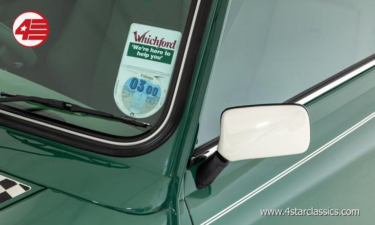 Finished in quintessential Almond Green with a contrasting white roof, door mirrors, and bonnet stripes, this exceptional late-model Cooper epitomises the charm of the final 'classic' Minis. The paintwork remains in fantastic original condition with barely an imperfection in sight, and with the wider arches and 13x6 alloys the car has a very purposeful stance. The four driving lamps add a touch of rally-inspired character while the brightwork, badging, and John Cooper details all remain in excellent condition. The car has always been correctly dry stored to preserve its amazing condition and, just as you'd expect for the mileage, everything feels incredibly fresh and tight.