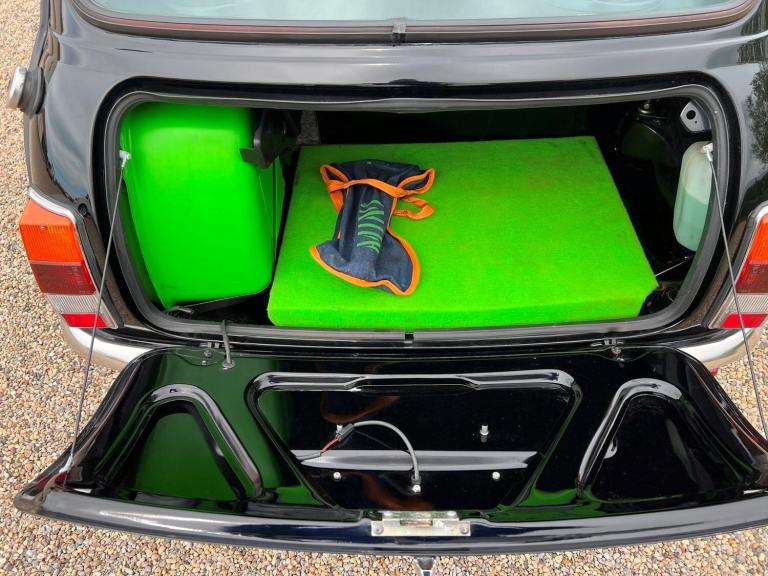Originally designed as part of the Great Brits minis (along with David Bowie's chromed mini, Natasha Caine's bullion mini, Kate Moss's Spider Web mini and the 'Design a mini' competition winner Mark ward's clock cogs mini), the 84 striped, 24 colour car (I believe 2 were made) appeared at the 1997 Tokyo Motor Show, and inspired a run of limited edition minis. 300 UK cars were made, with a total of 1800 worldwide. The Paul Smith mini is one of the best equipped limited edition minis, and in the UK, was only available in Paul Smith Blue. This colour is reputed to be the colour of the shirt that Paul Smith was wearing at the meeting with the rover designers, and when asked what colour he wanted the car, he tore a section off his shirt!! (How true this story is is unknown, but is one we have heard for years in the mini community, and we like it!!) The Japanese spec cars were also available in Old English White, and Anthracite Black, together with air conditioning. The Paul Smith Mini was designed to mimic a Paul Smith Suit. It had a conservative appearance, but had a bright twist! Several parts were given the 'Paul Smith' treatment and were coloured in bright Citrus Green. These parts were the rocker cover, HT leads, inside the glove box, the petrol tank and the boot board.
