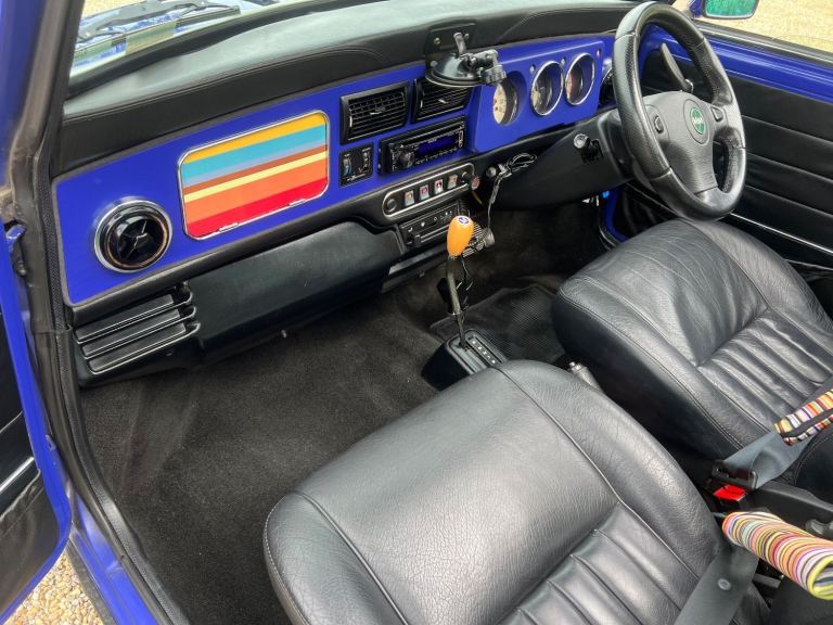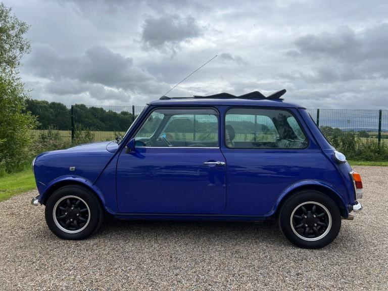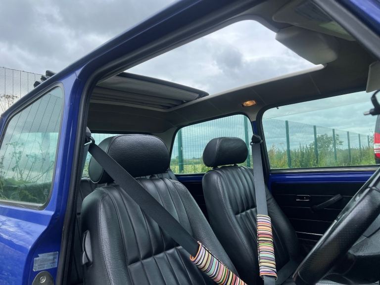 1998 Classic Mini Paul Smith in Blue with a Automatic Gearbox , this vehicle has spent all its life in japan and was registered in japan when in the 90's they had a mini phenomenon , Mini's in Japan are fitted standard with Aircon unlike the Uk where it has to be fitted as an extra . This colour is very rare to find for a Japanese Paul Smith mini , UK Paul Smith minis were predominantly this colour..