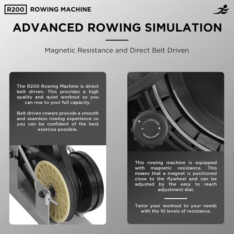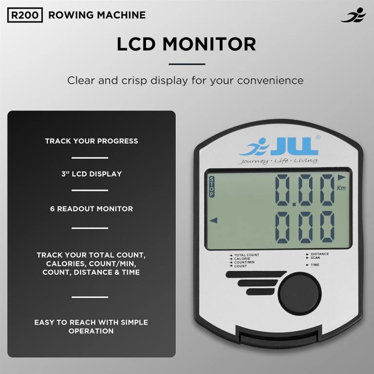 JLL Fitness R200 Rowing Machine Simulation, Magnetic Resistance and Direct Belt Driven, LCD Monitor to track your progress