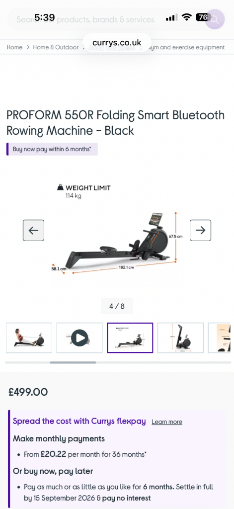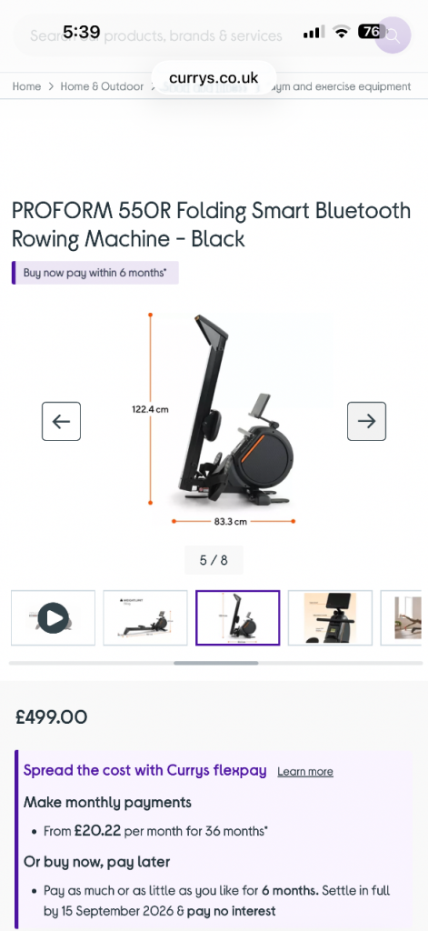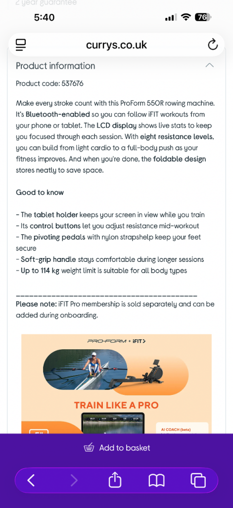 PROFORM 550R Folding Smart Bluetooth Rowing Machine - Black